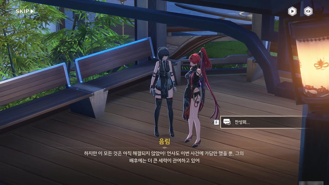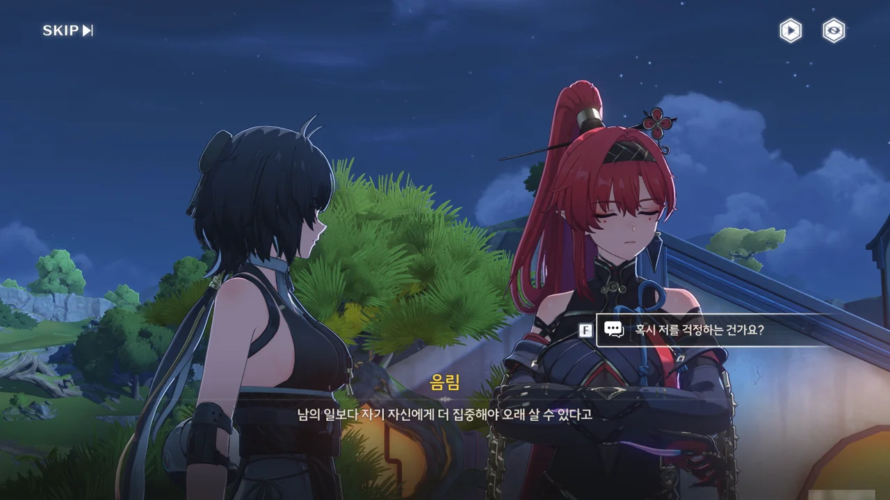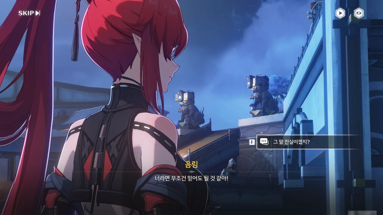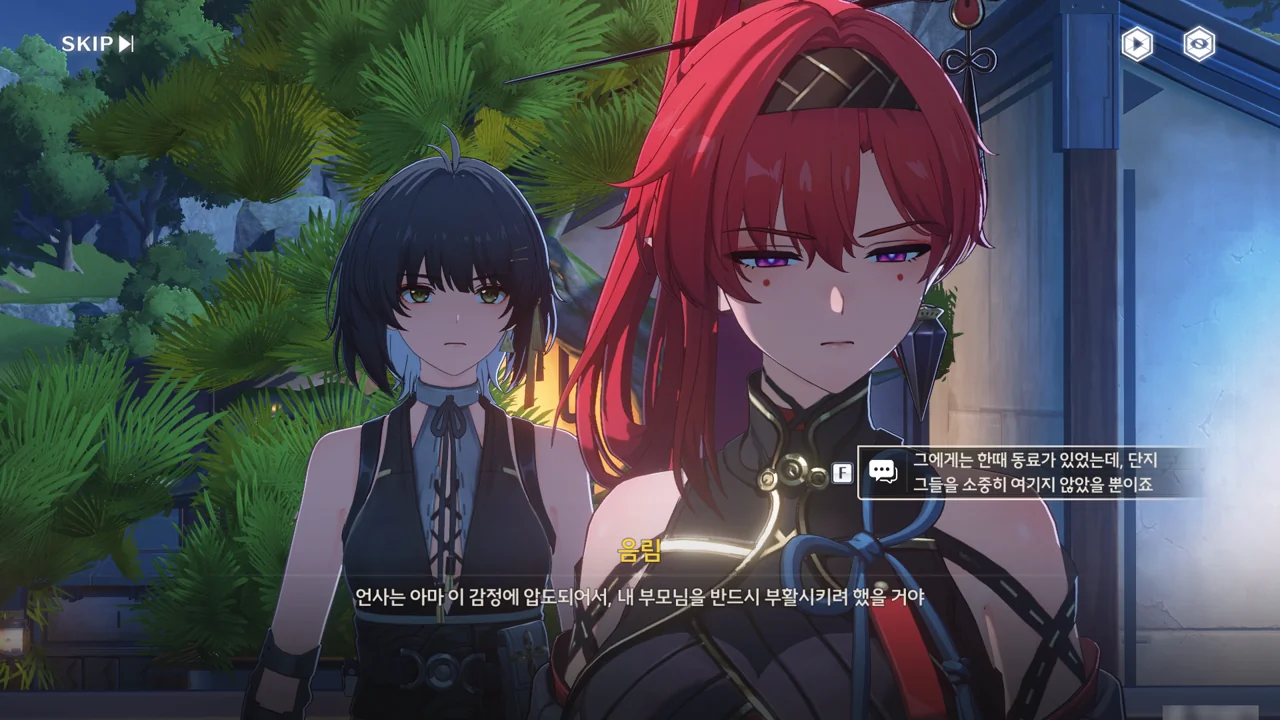 잔성회와의 악연이 조금 질긴 방랑자가 여기서 발을 뺄리는 없고, 그래서 장난스레 "자비를 베풀어주십시오 아가씨!"라고 대답한다. 방랑자가 장난치는 걸 눈치챈 음림 역시 진심으로 방랑자를 위협하진 않았다.
