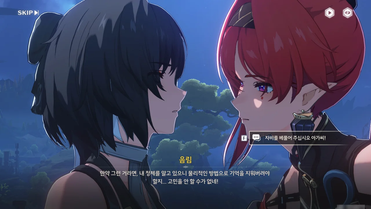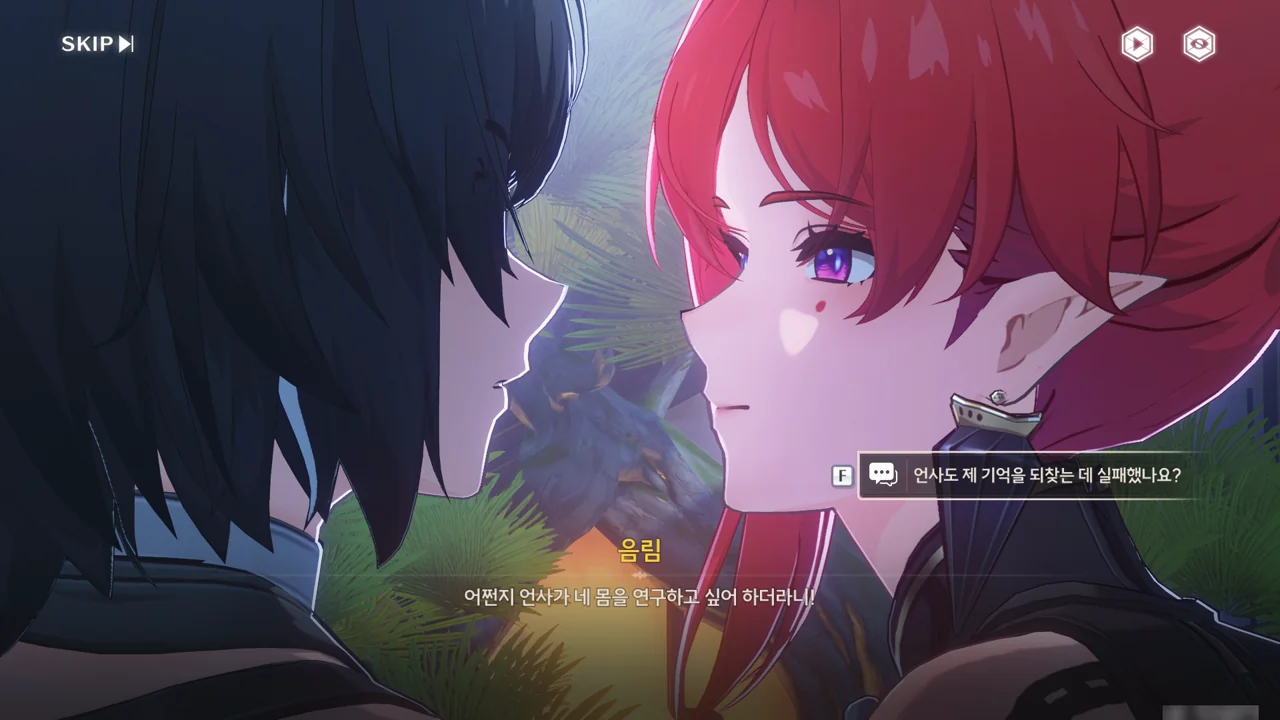 음림의 전기 충격이 따끔했다고 말할 때의 방랑자가 너무 귀엽다! 거기에 대고 "어쩐지 언사가 네 몸을 연구하고 싶어 하더라니!"라고 음림이 말하는데, 음림의 표정 때문일까, 멀쩡한 문장이 자꾸만 섹드립으로 읽힌다.