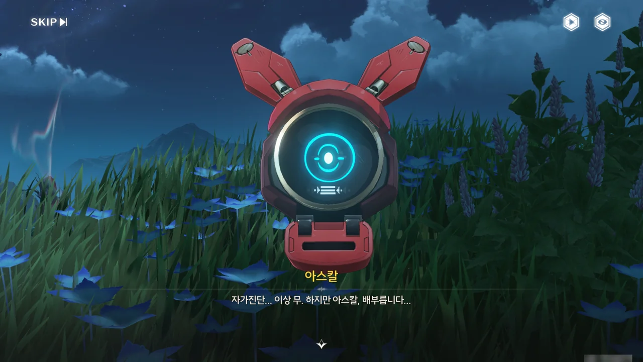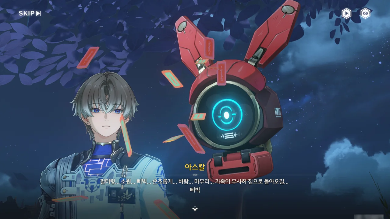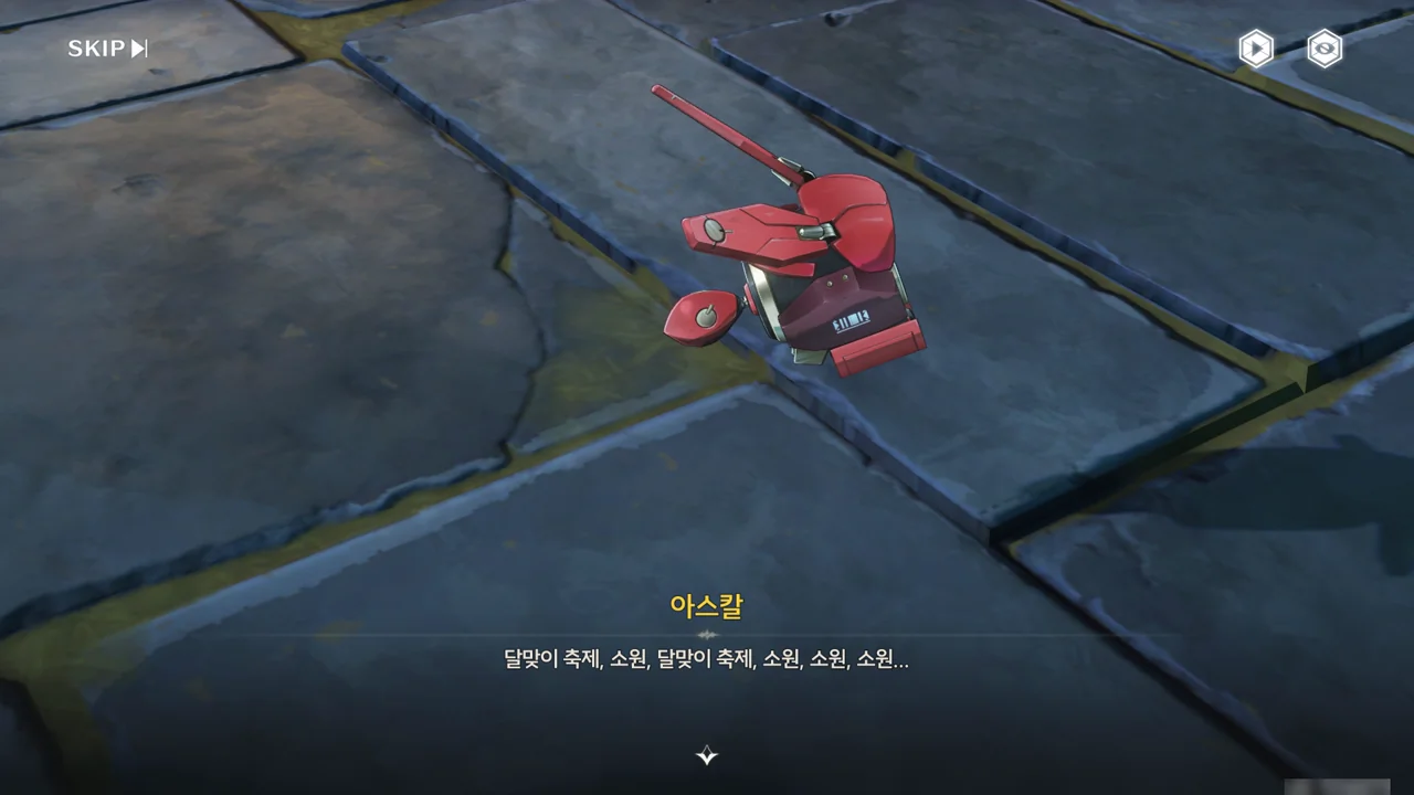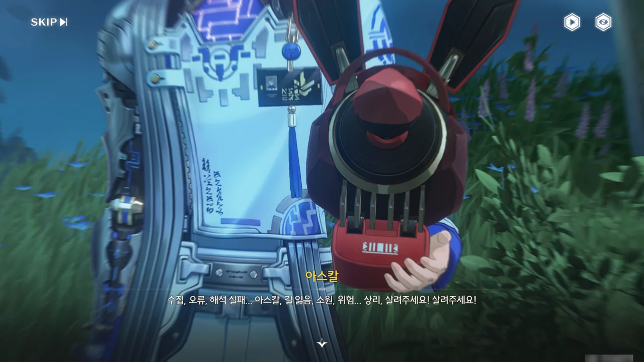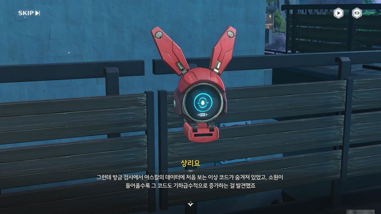 누군가(상리요)가 자가 검진을 명령하자, 아스칼이 자가 검진 중 오류와 함께 소원지로 추정되는 무언가를 마구잡이로 내뱉기 시작한다.