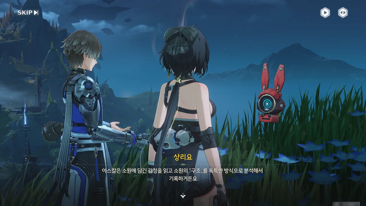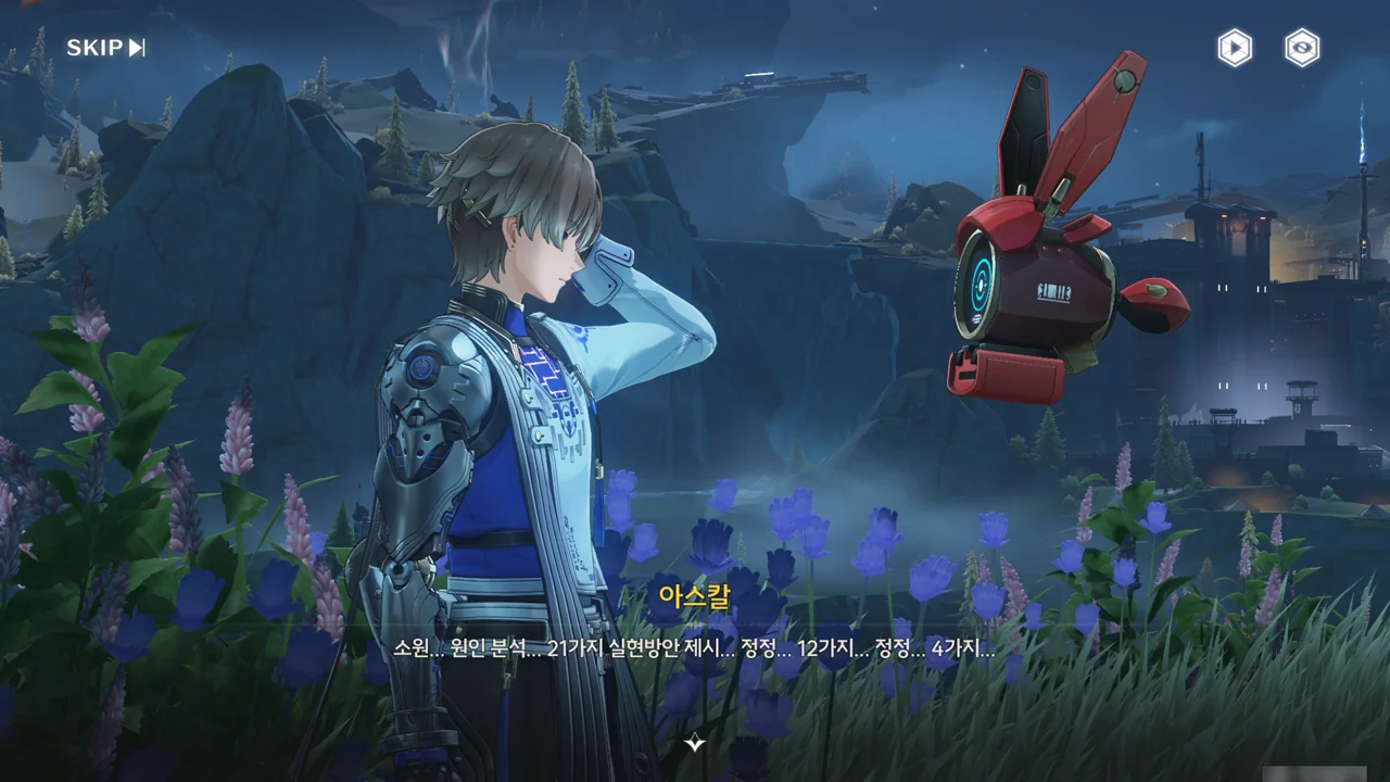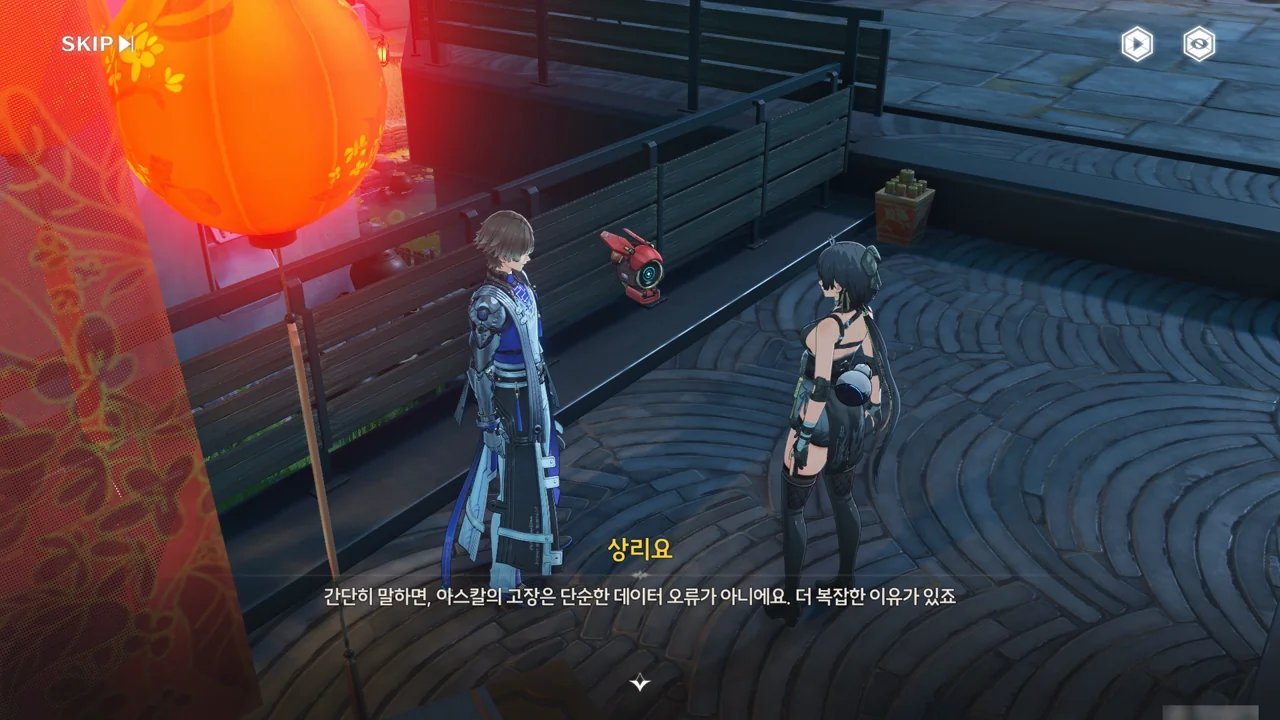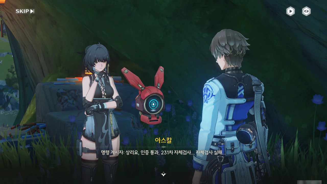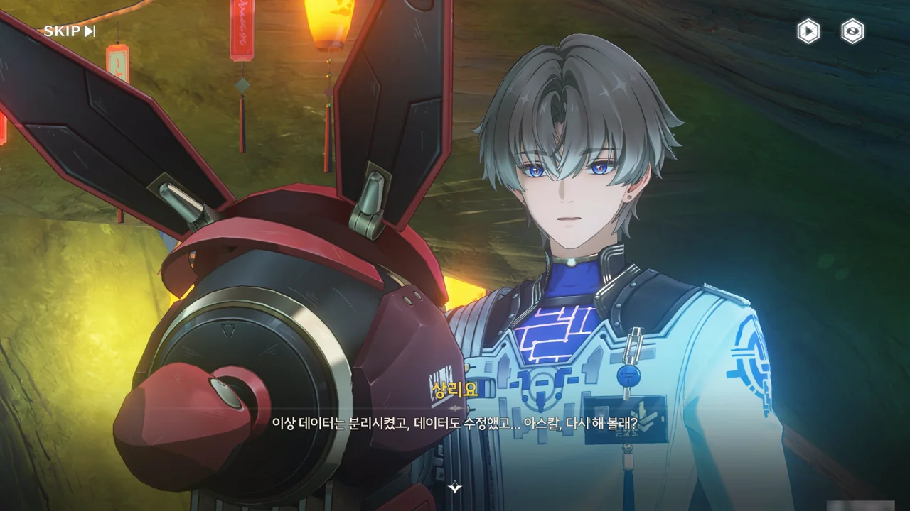 누군가(상리요)가 자가 검진을 명령하자, 아스칼이 자가 검진 중 오류와 함께 소원지로 추정되는 무언가를 마구잡이로 내뱉기 시작한다.