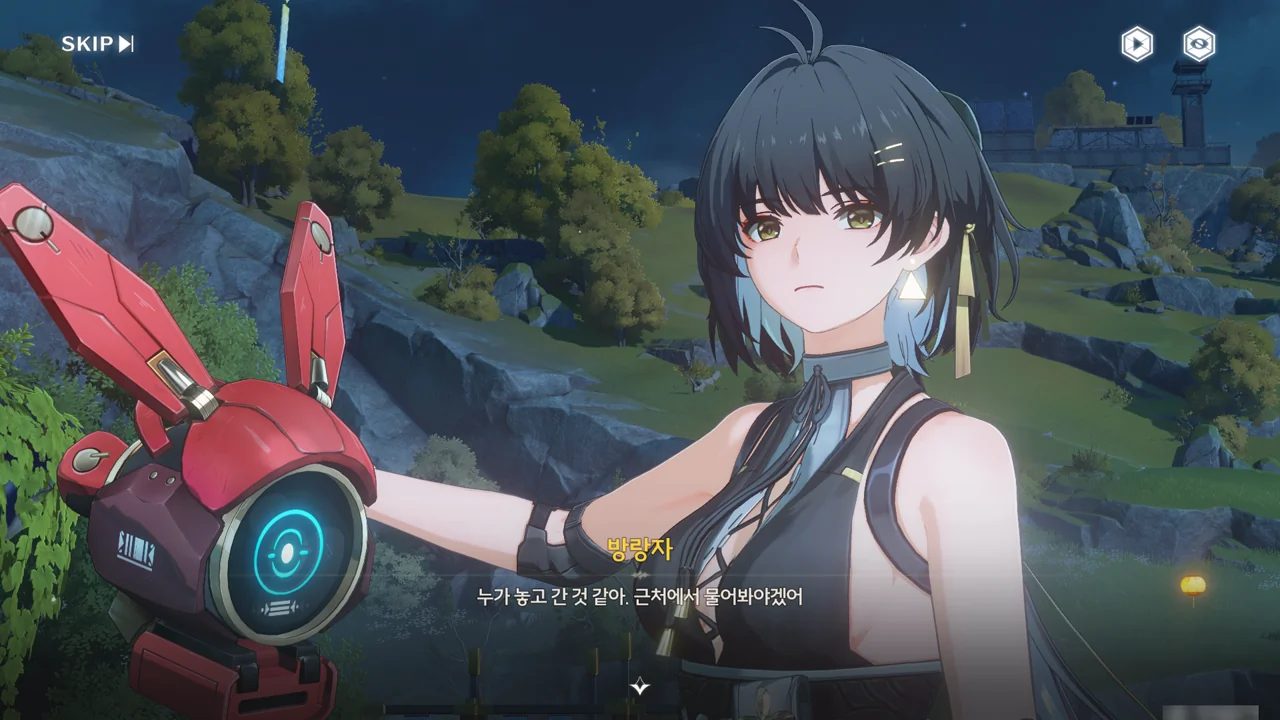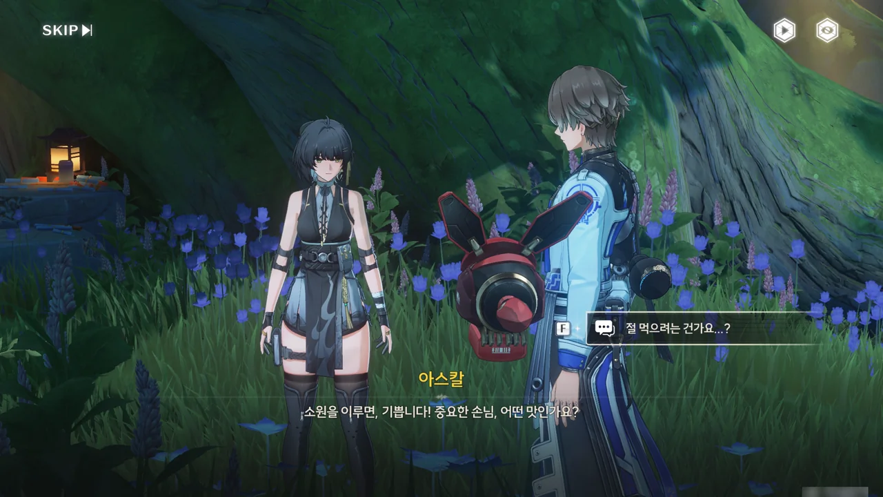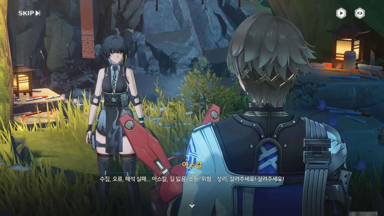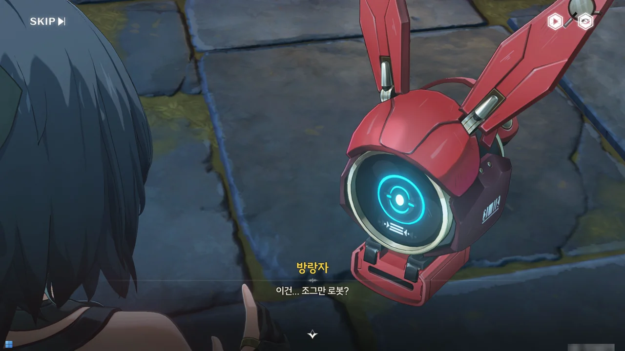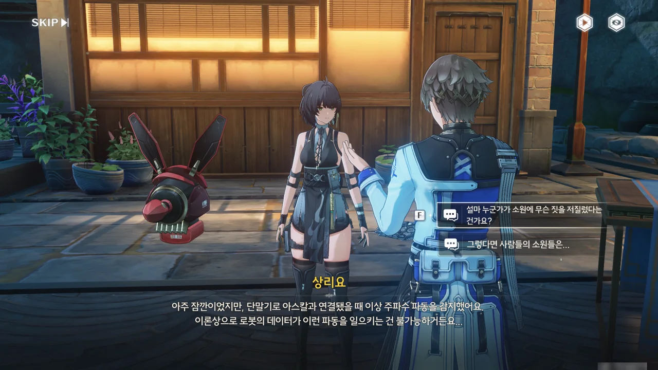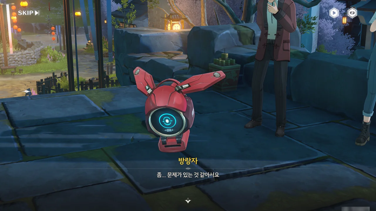소원나무 근처에 가자, 로봇(아스칼)이 누군가에게 살려달라며 품에 안겨든다. 서, 설마 방랑자가 그렇게 위험하게 보였던 건가?