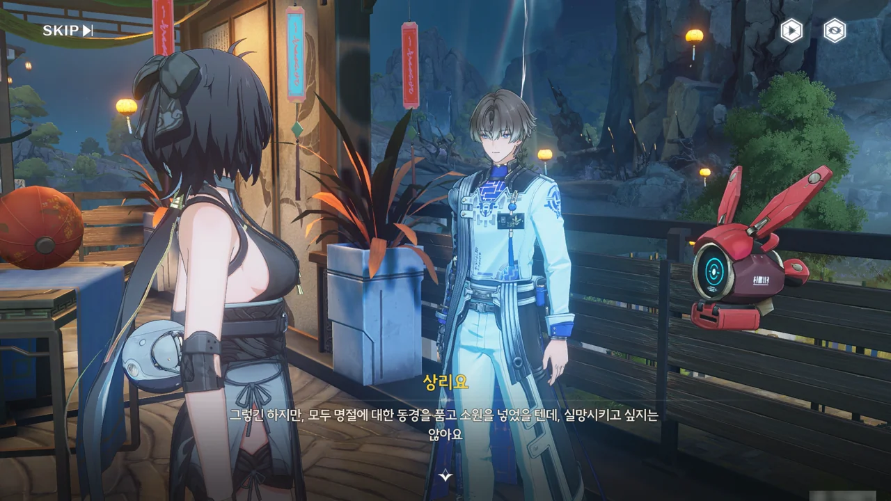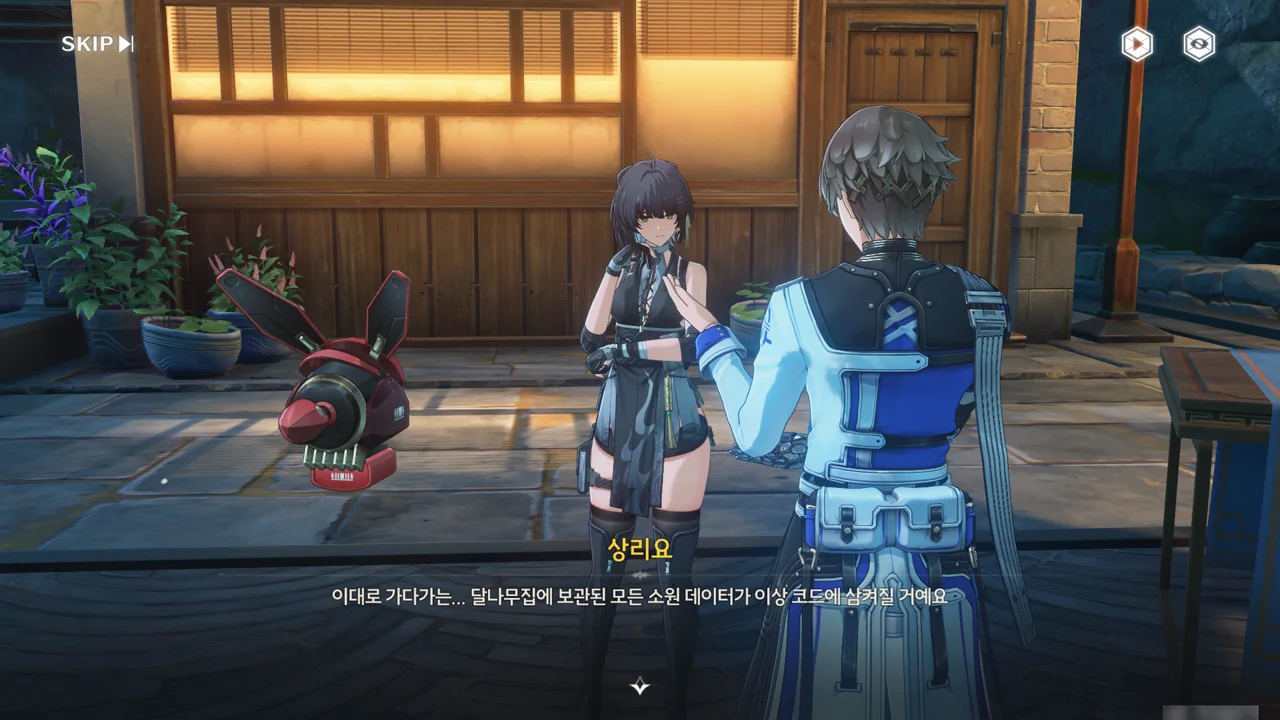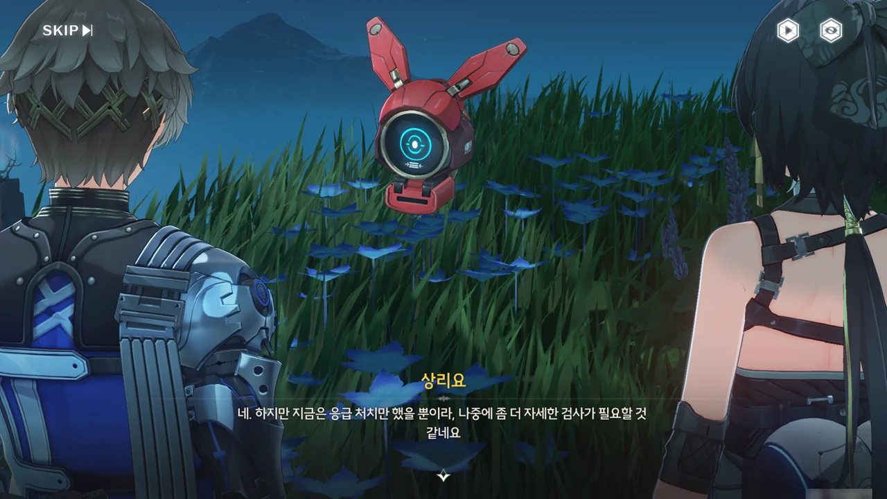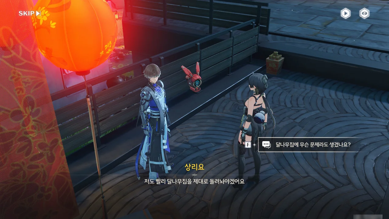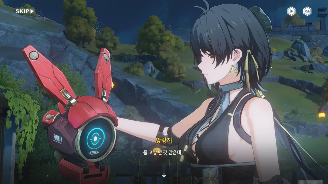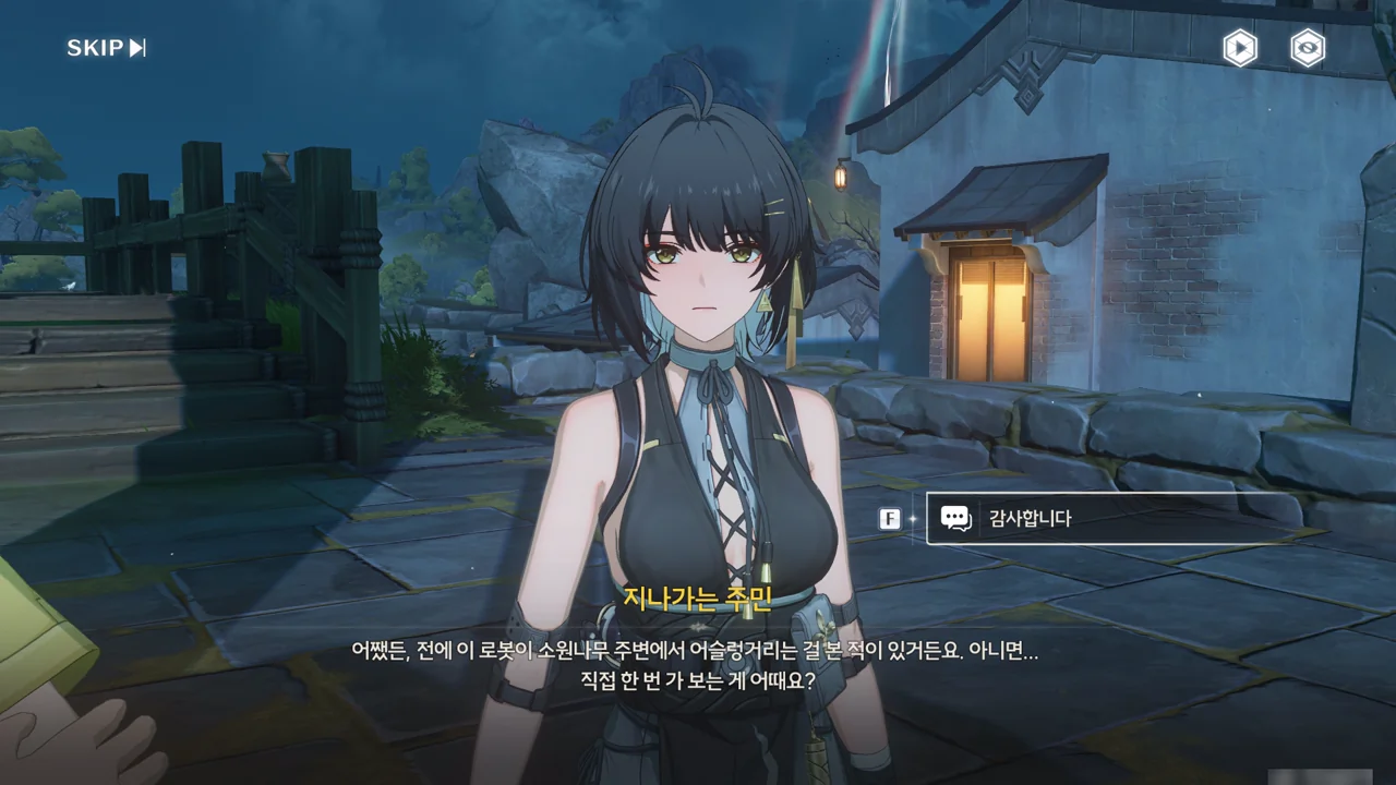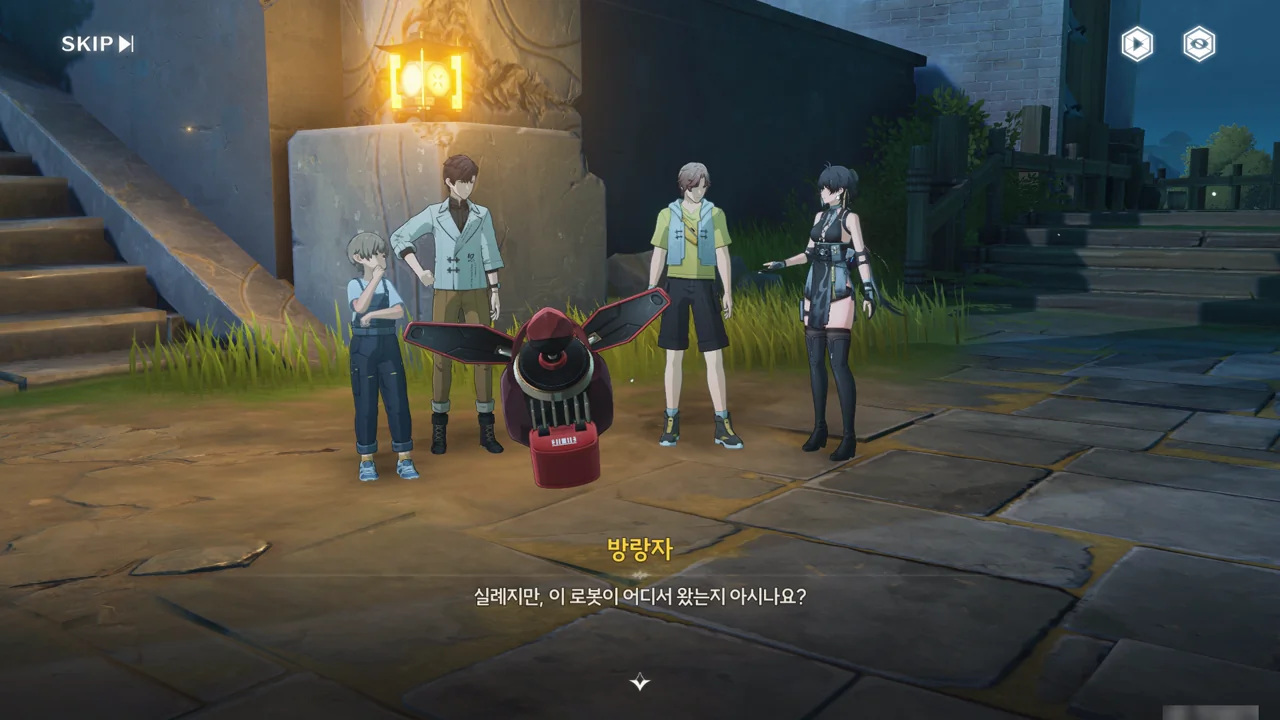 소원나무 근처에 가자, 로봇(아스칼)이 누군가에게 살려달라며 품에 안겨든다. 서, 설마 방랑자가 그렇게 위험하게 보였던 건가?