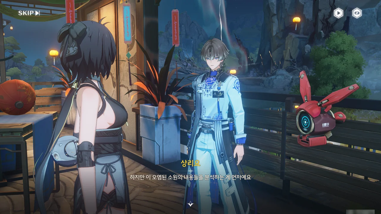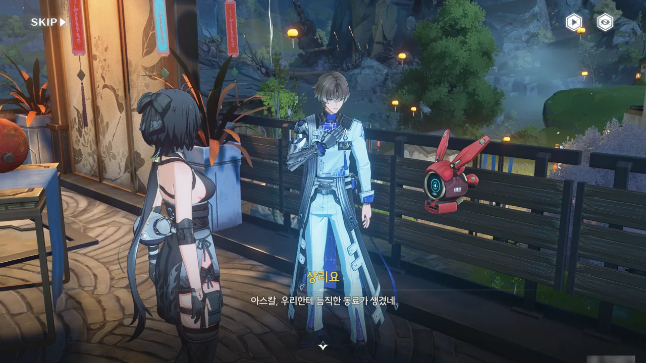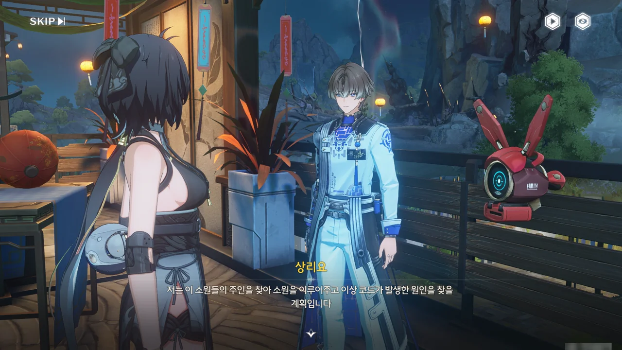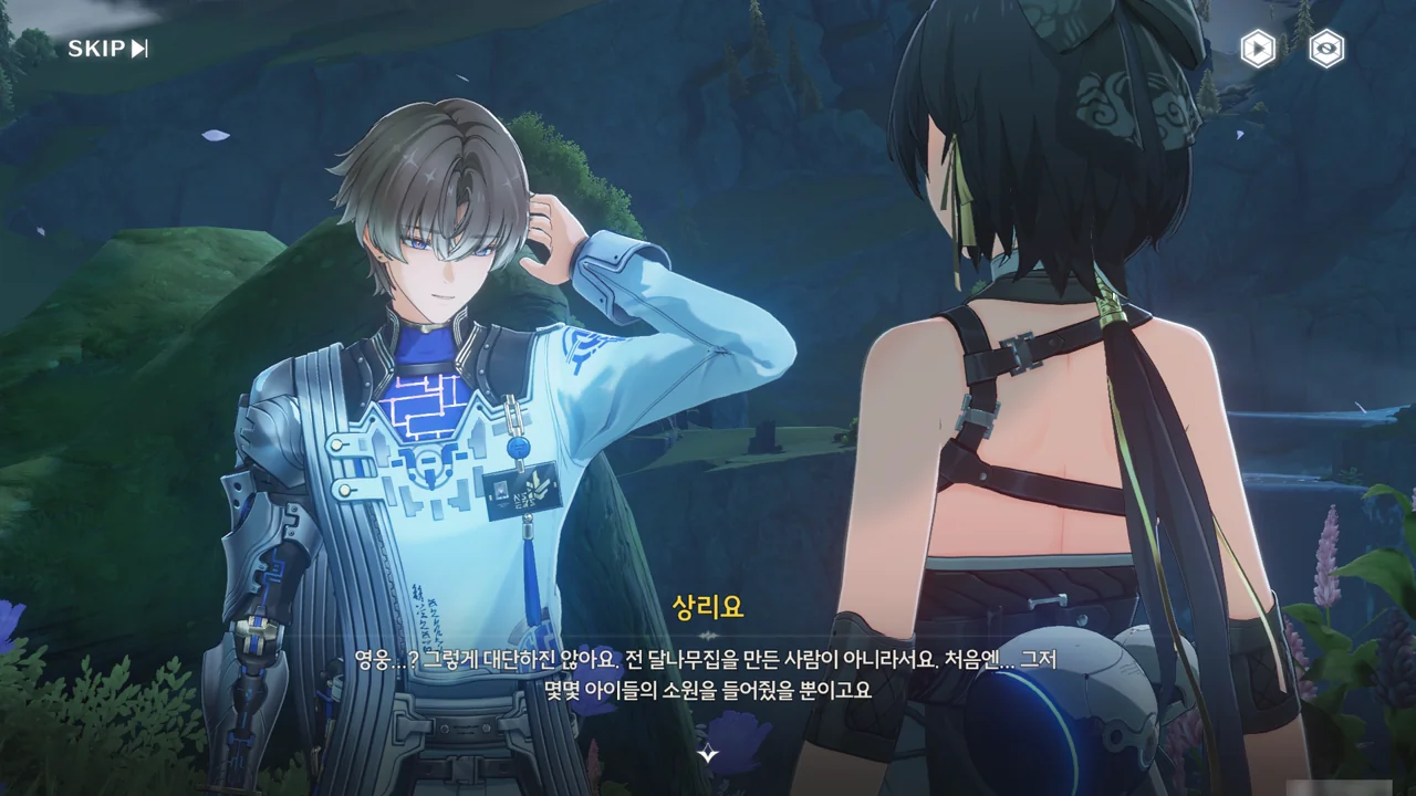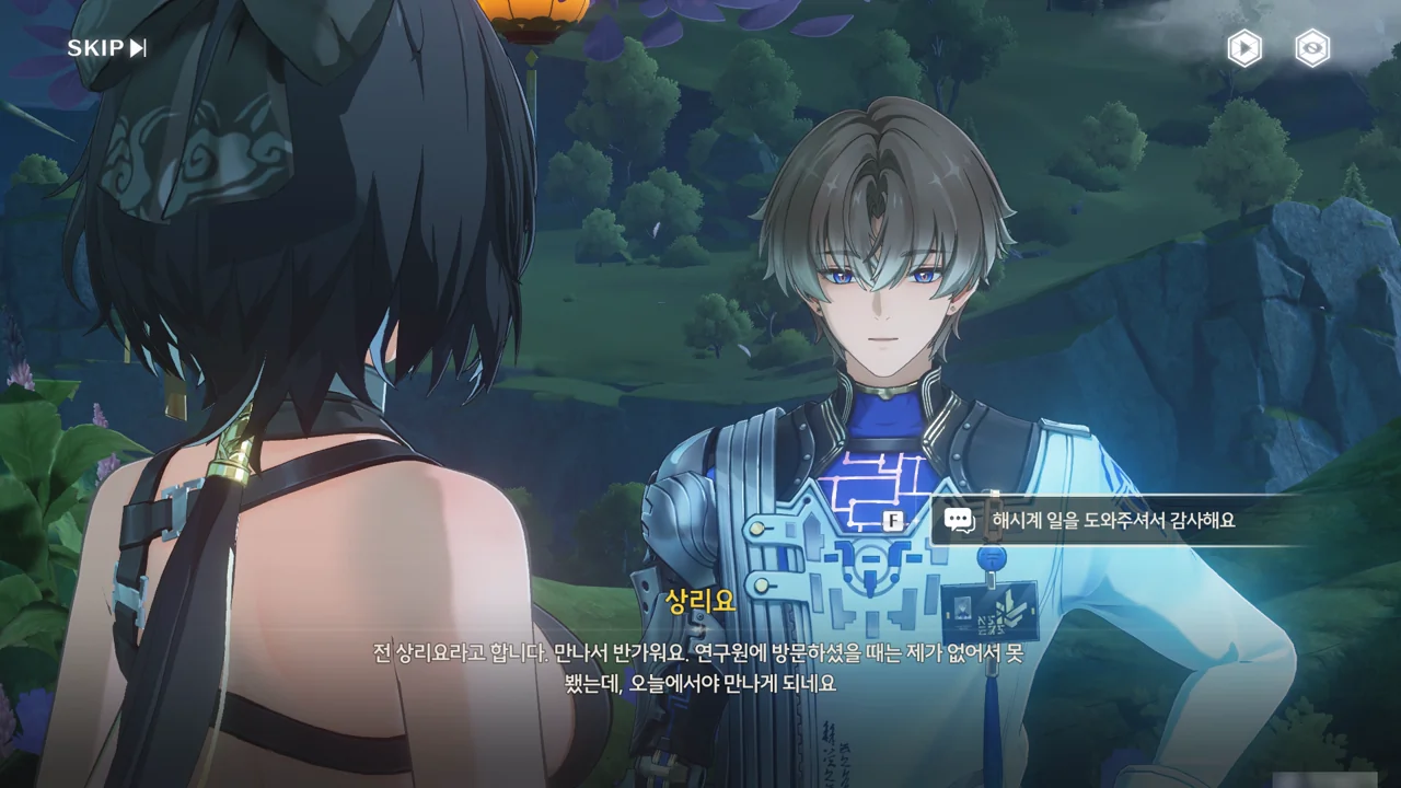 그 당시 상리요는 천공부를 도와 손상된 정찰탑을 유지 보수하고 있었기에, 방랑자를 만나는 건 이번이 처음이다.