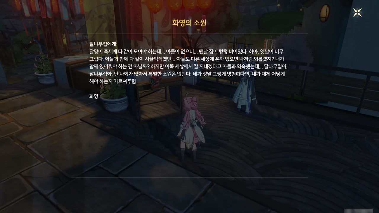 화영 할머니는 달나무집에 가 소원의 답을 듣기 전, 자신의 힘으로 수원이 남긴 뜻을 좀 더 돌아보겠다고 말하며, 방랑자와 상리요에게 감사를 표한다.