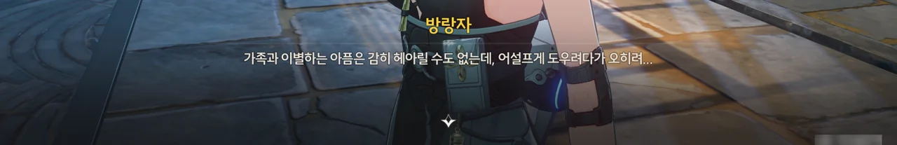 여태까지는 아들이 마지막으로 남긴, 명식을 물리치는 날을 꼭 봐달라는 부탁 하나로 버틸 수 있었지만, 방랑자가 명식을 물리치고 나니 저세상에 혼자 있을 아들이 혹여나 자신처럼 외로운 건 아닐까 하는 생각이 들어 자살을 생각하고 있었다고 한다.