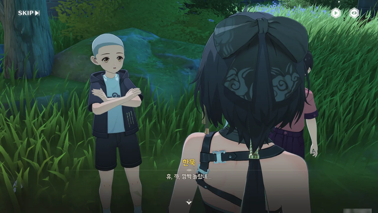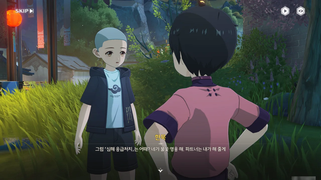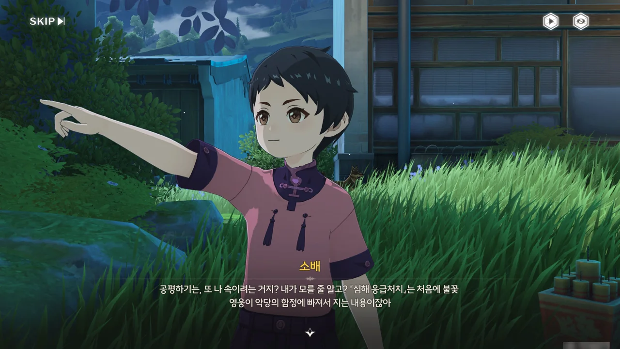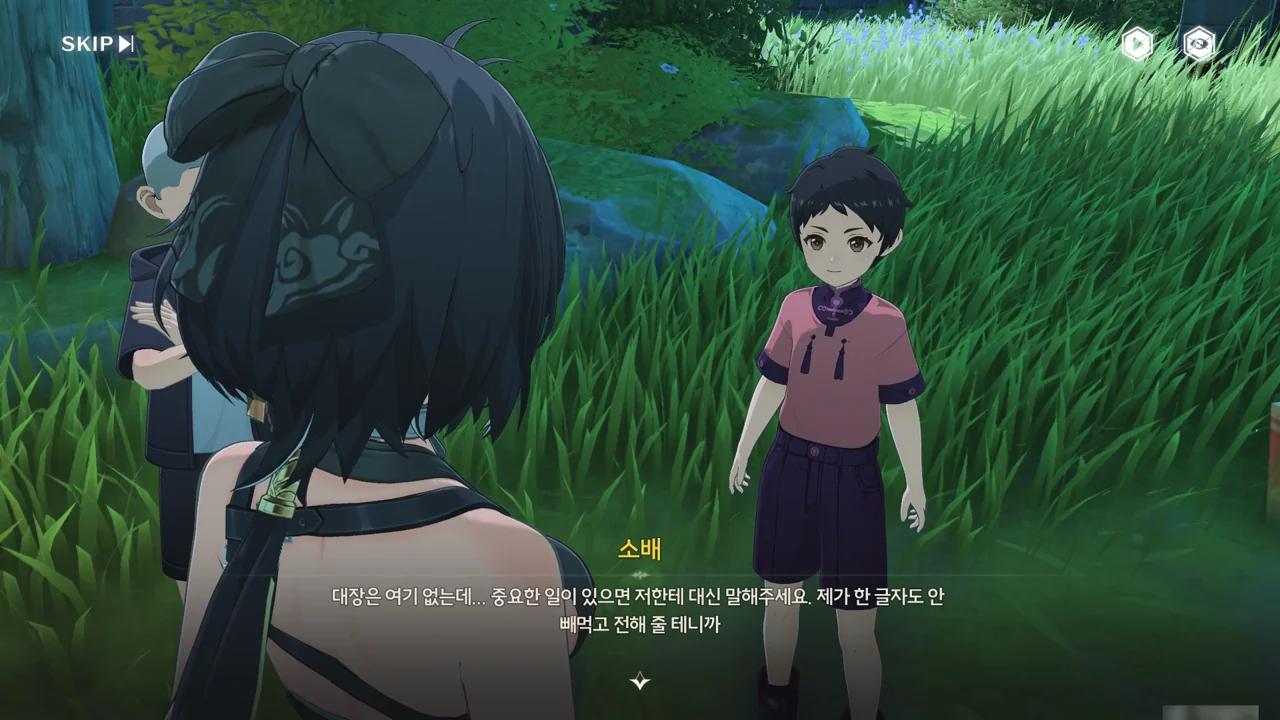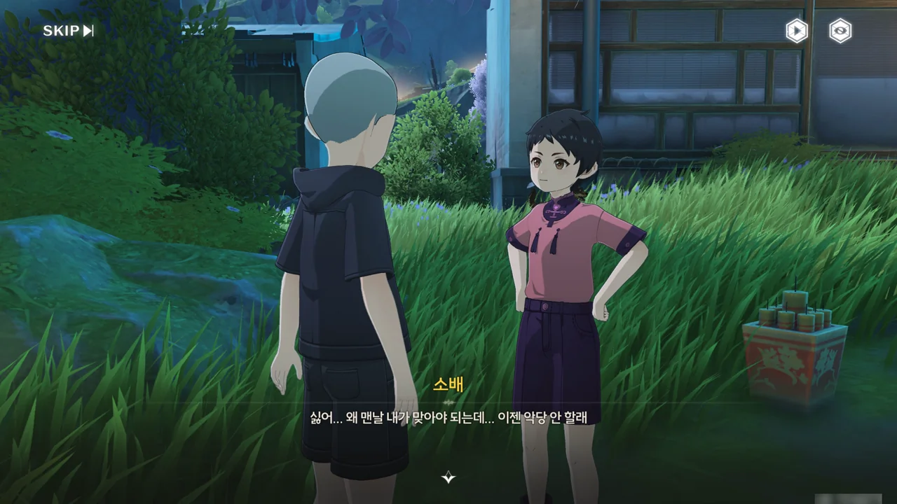 처음 보는 어른에게 자신이 '대장'임을 알리며 맞는 역할인 잔상 역을 제안하기까지 한다.