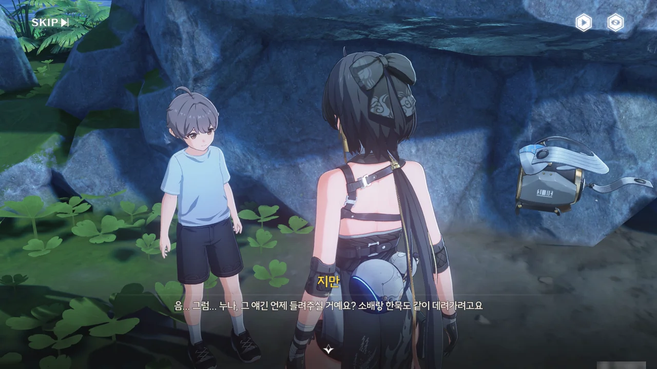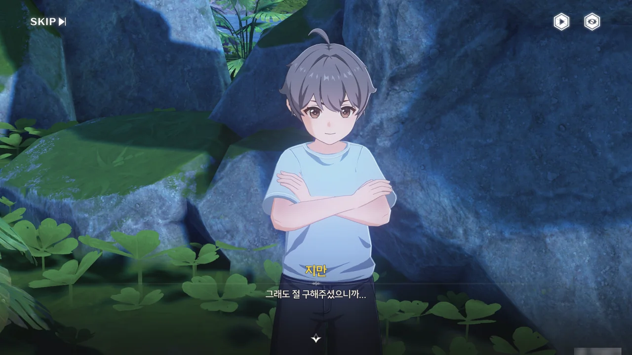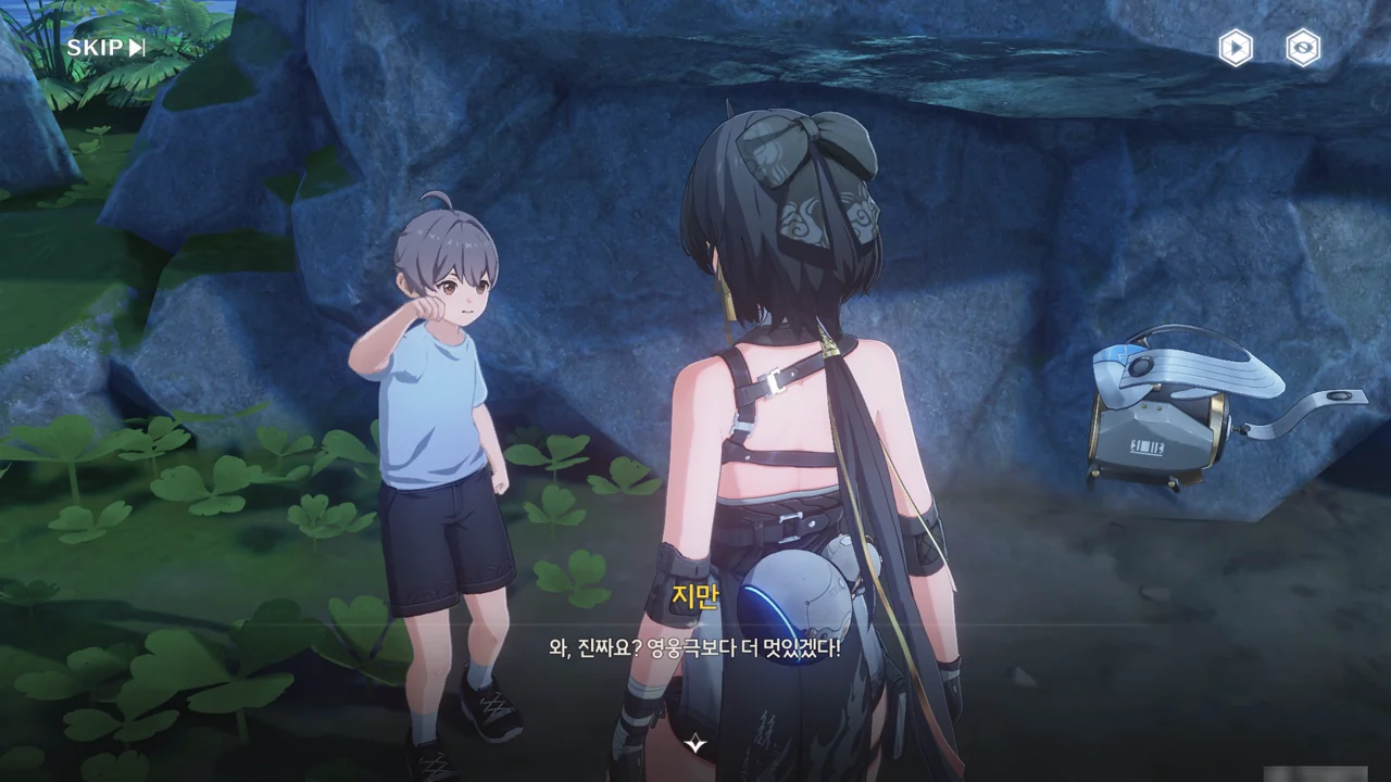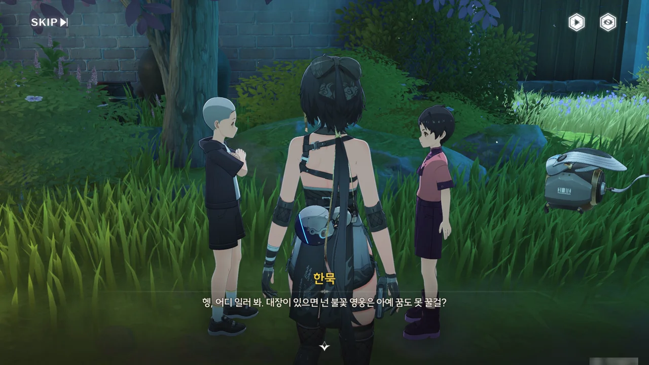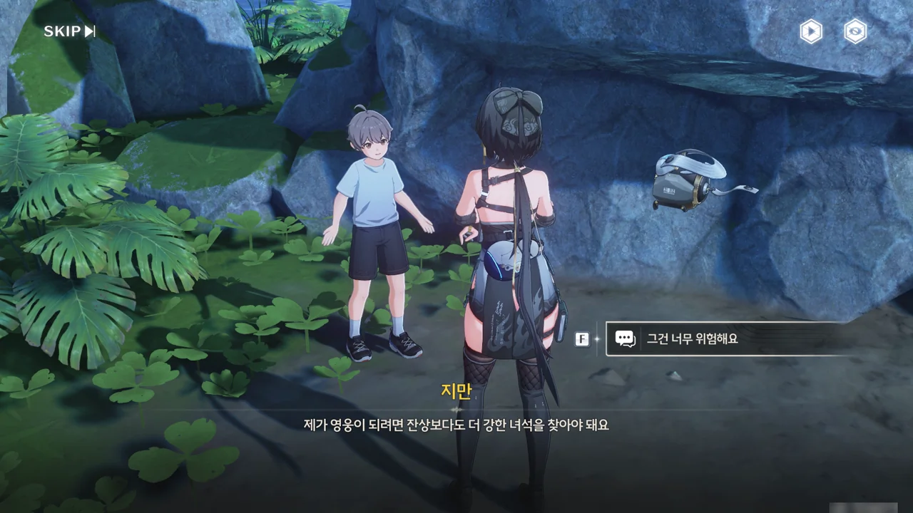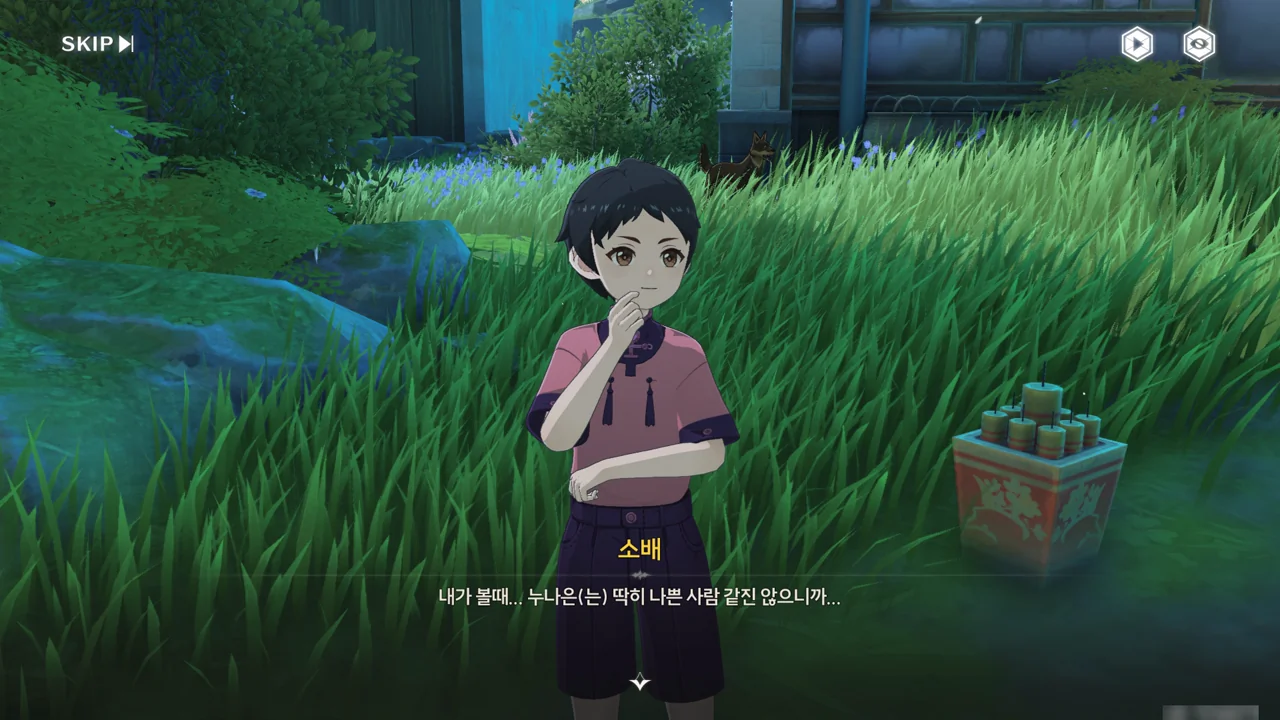 처음 보는 어른에게 자신이 '대장'임을 알리며 맞는 역할인 잔상 역을 제안하기까지 한다.