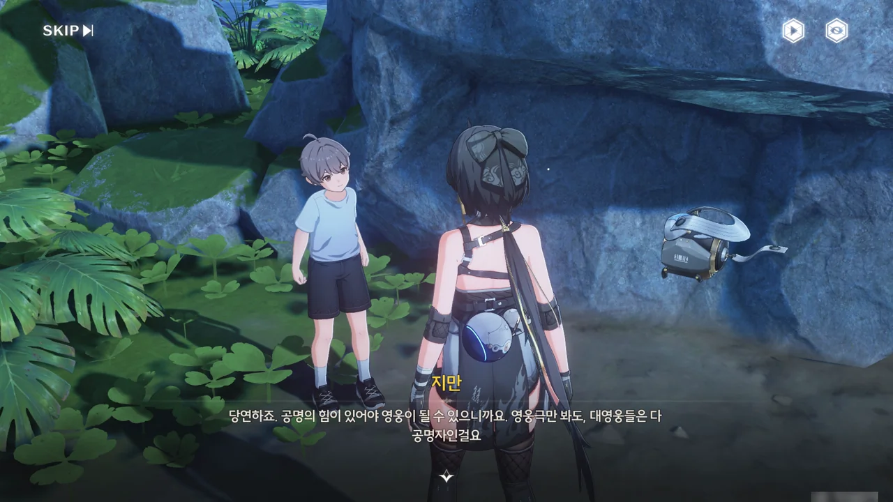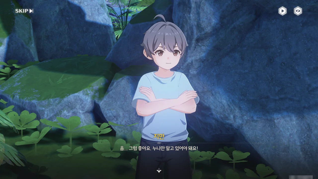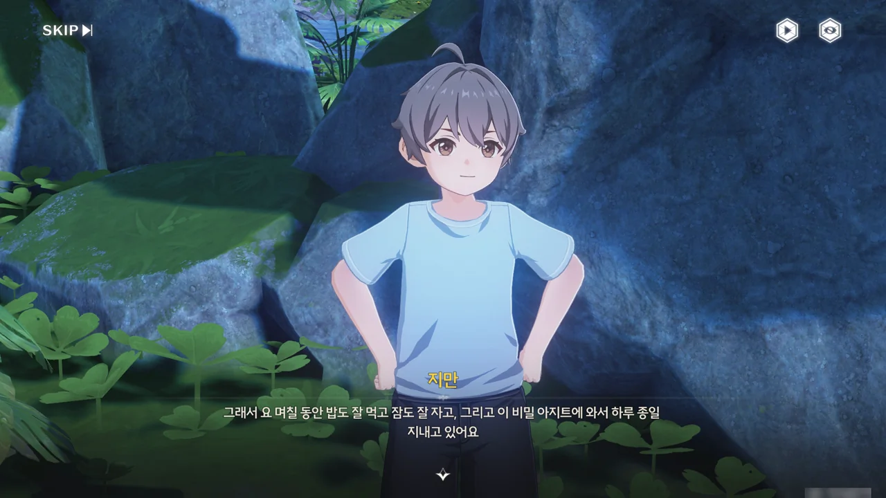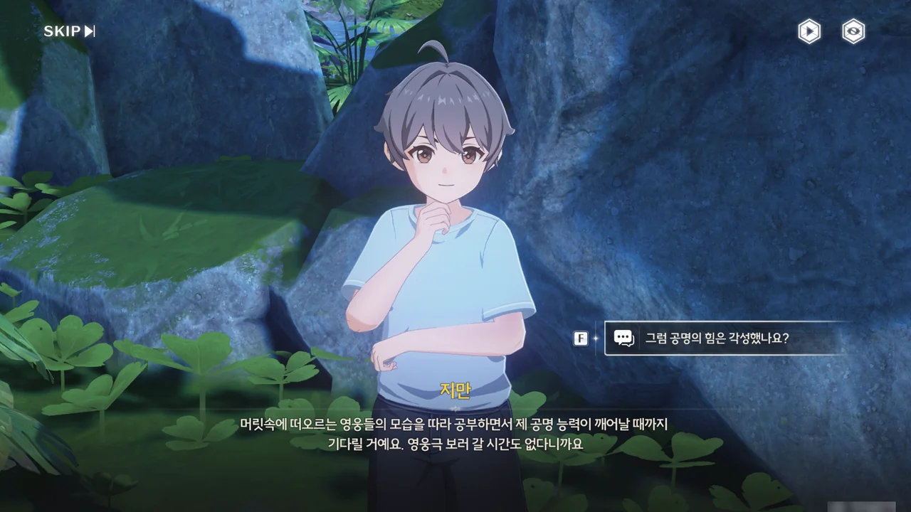 지만이 평소 자주 다니는 곳은 시내, 극장, 비밀 아지트이다. 지만을 영웅으로 만들어주기 위해 왔다고 하자, 비밀 아지트의 위치를 알려준다.