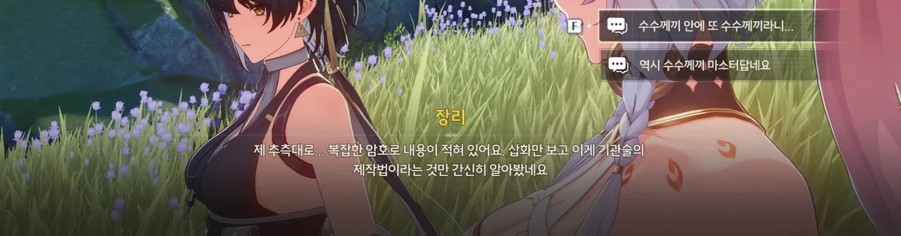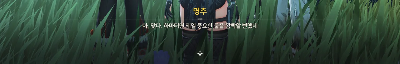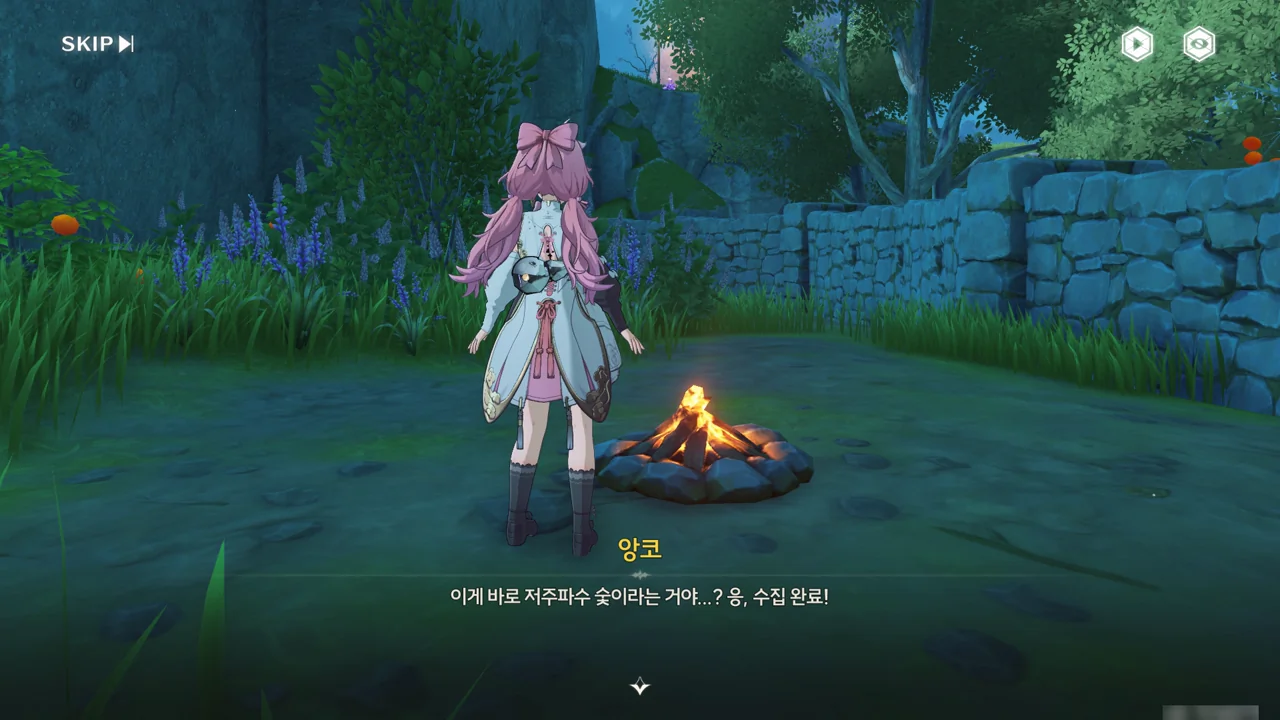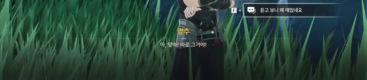 '저주파수 숯'이 뭔가 했는데, 그냥 모닥불 숯이었다. 명조는 '주파수'라는 단어를 너무 무안단물처럼 써먹는다니까…
