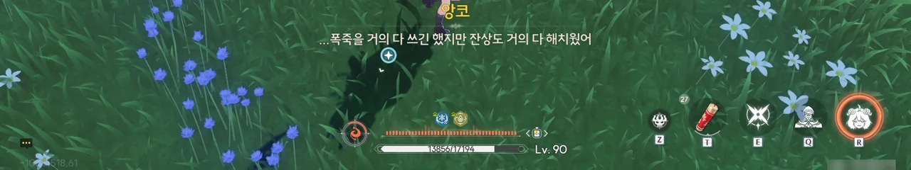폭발 소리를 듣고 잔상이 몰려왔다. 앙코가 하라는 대로 폭약을 던졌는데, 대미지가 고작 500밖에 나오지 않는다. 이거, 내 앙코가 평타 한 대 때리는 것보다 약해!