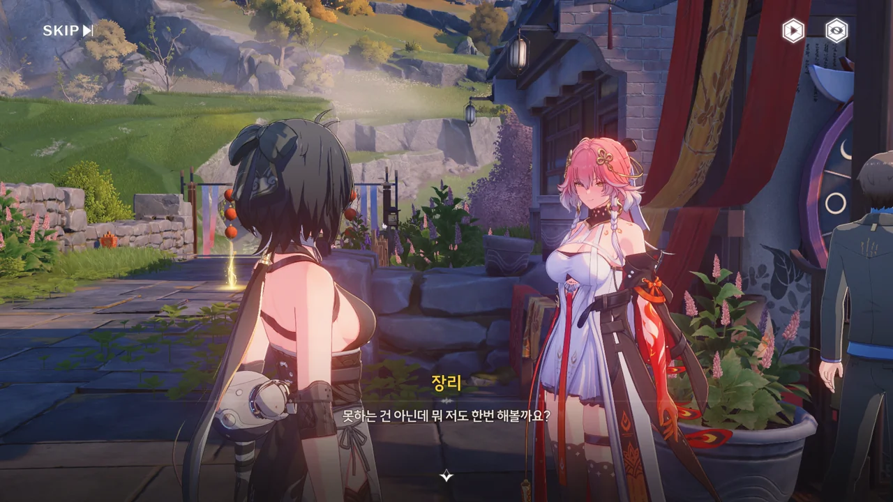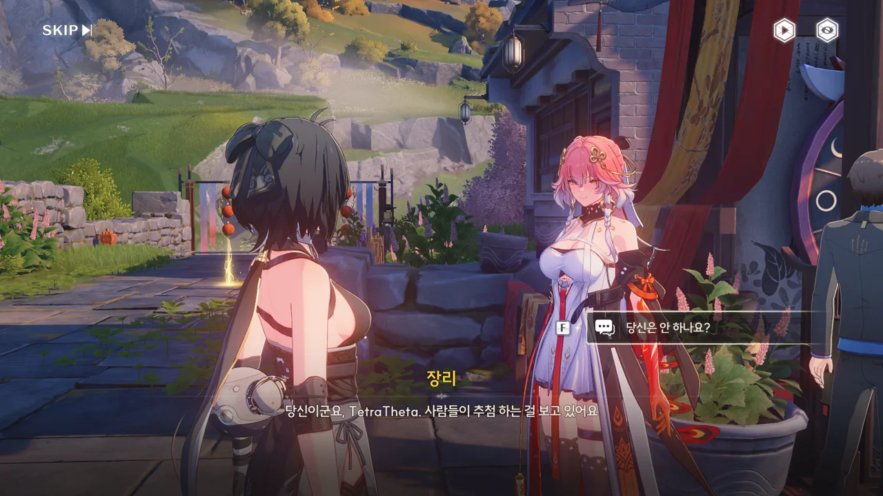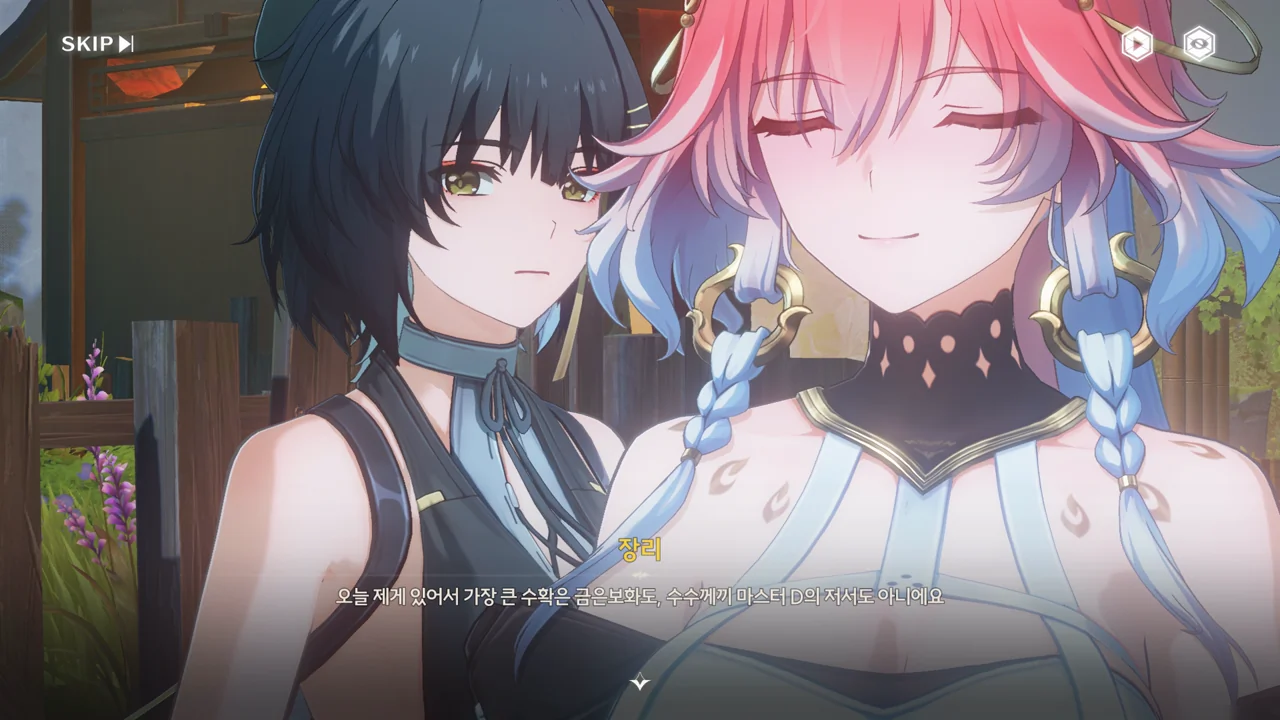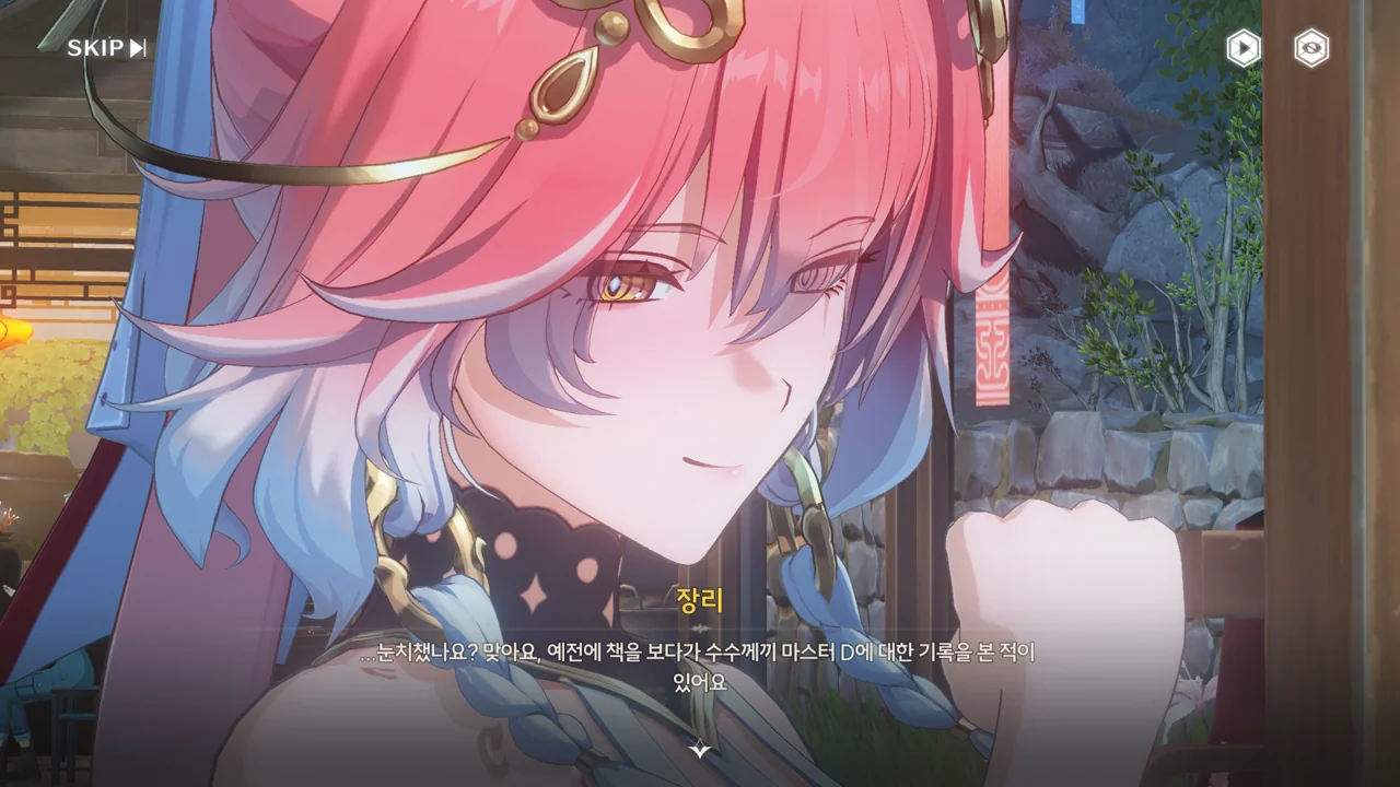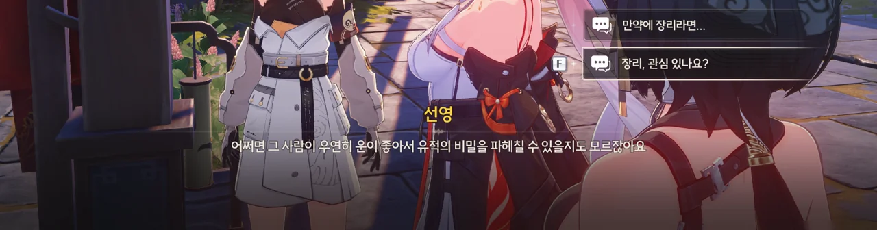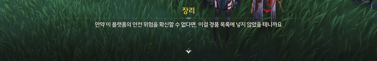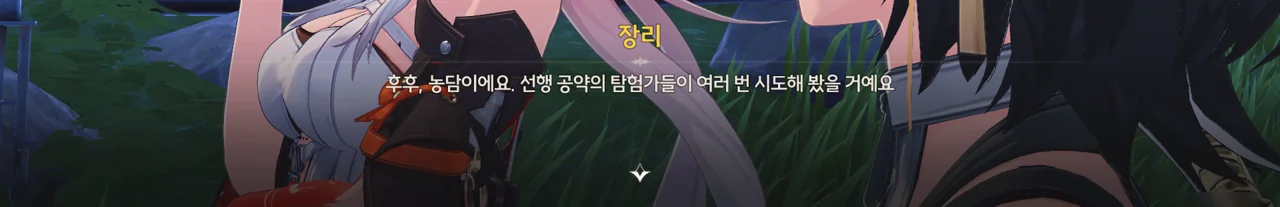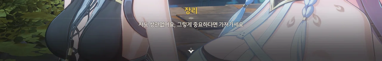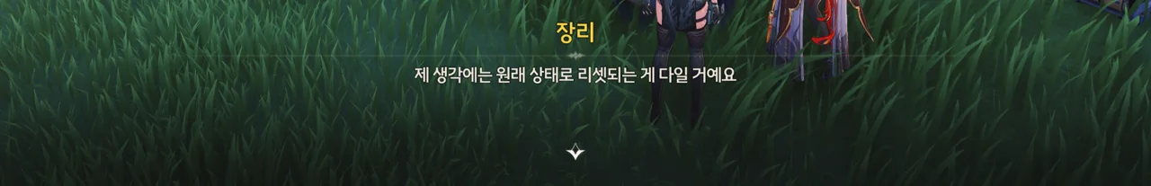 장리 캐릭터 스토리를 읽어 보면, 장리가 평생 동안 찾아다닌 사람이 바로 방랑자이니, 방랑자 앞이라서 내숭 떠는 게 분명하다.