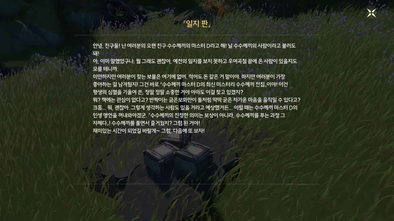 오늘 제게 있어서 가장 큰 수확은 금은보화도, 수수께끼 마스터 D의 저서도 아니에요.