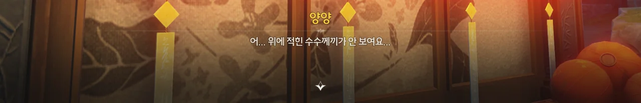 세 번째 문제는 직접 골라 보라는데, 꽃등 위쪽 화첩 부분에 적힌 수수께끼가 보이지 않는다. 특수 먹물을 써서 꽃등에 가까이 가져다 대야 글씨가 보인다는데… 그러면 대체 어떻게 수수께끼를 고르란 거야?