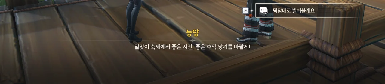 알고 보니 능양과 명추가 달맞이 축제 기간에 맞춰서 새로운 덕담을 개발 중이었다. 혼자서 생각하는 것보다 둘이서 생각하는 게 더 나을 거라고 생각해, 둘이 서로 덕담을 주고받으며 새로운 덕담을 만들고 있던 것이다.