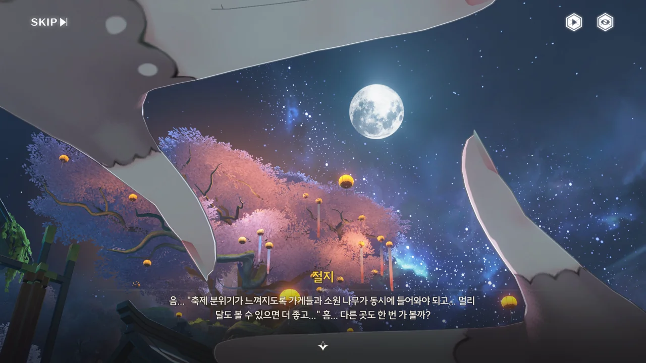 절지 뒤에 보름달이 떠있는 장면을 연출한 걸 보면, 이게 절지의 '소원'이라는 걸까?