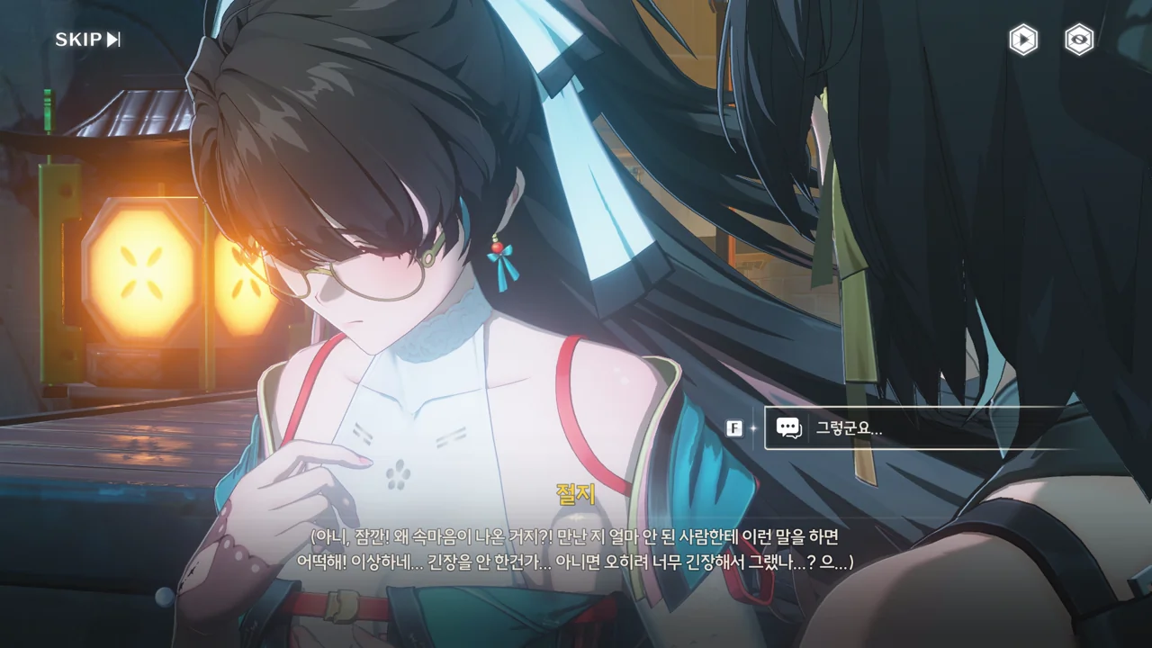 절지가 얼굴을 붉히는 걸 보면, 절지도 방랑자에게 호감이 있는 거겠지? 사람 마음은 잘 모르겠다니까…
