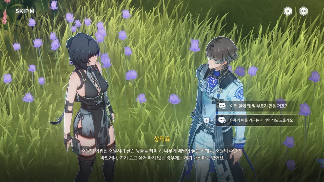 절지에게 보호욕구를 느끼는 건 방랑자 역시 마찬가지였는지, 절지를 혼자 두기에는 마음이 놓이지 않는다고 한다.