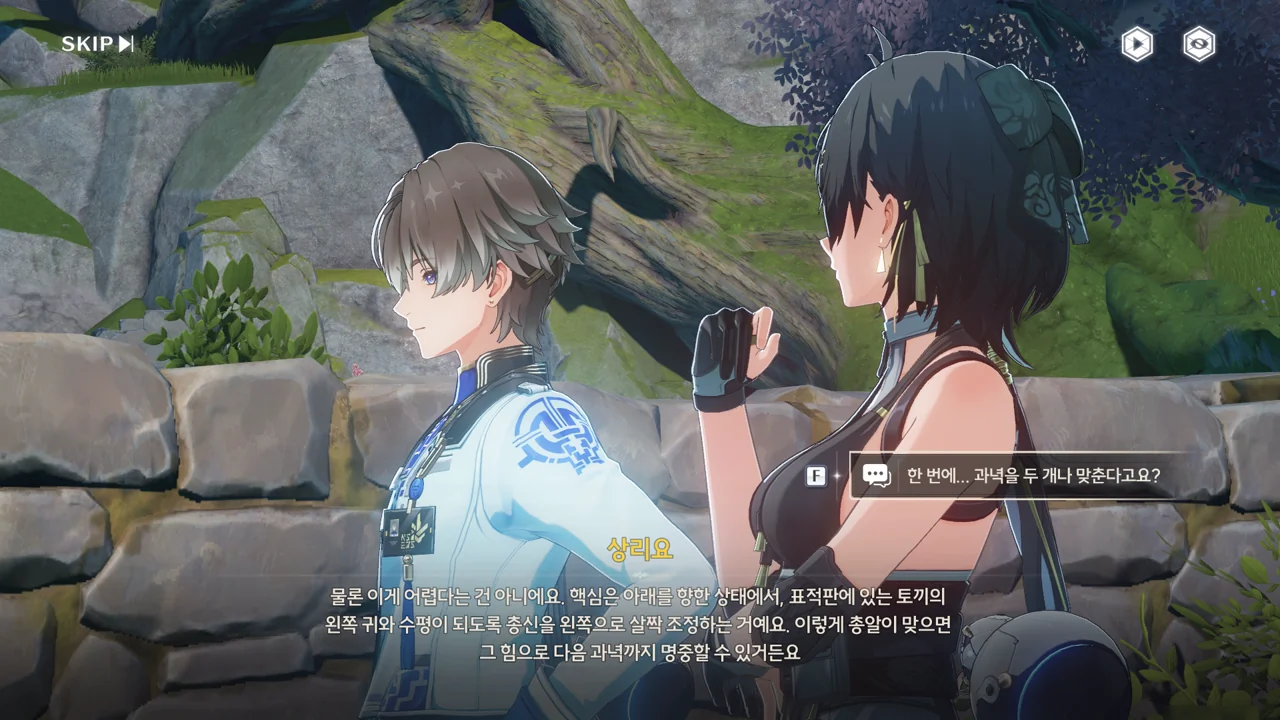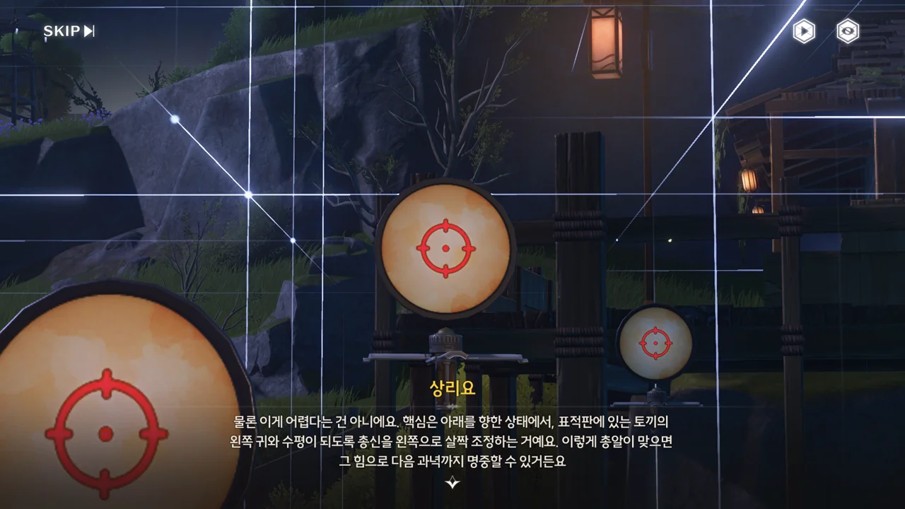 달병 맞히기를 보고 "총구를 살짝 내리면 과녁 중심을 더 잘 맞힐 수 있다", "도탄을 이용하면 한 번에 과녁을 두 개 이상 맞힐 수 있다" 같은 팁을 알려주는 상리요. 초아가 말하던 '전설 속 기록 보유자'가 바로 너였냐!
