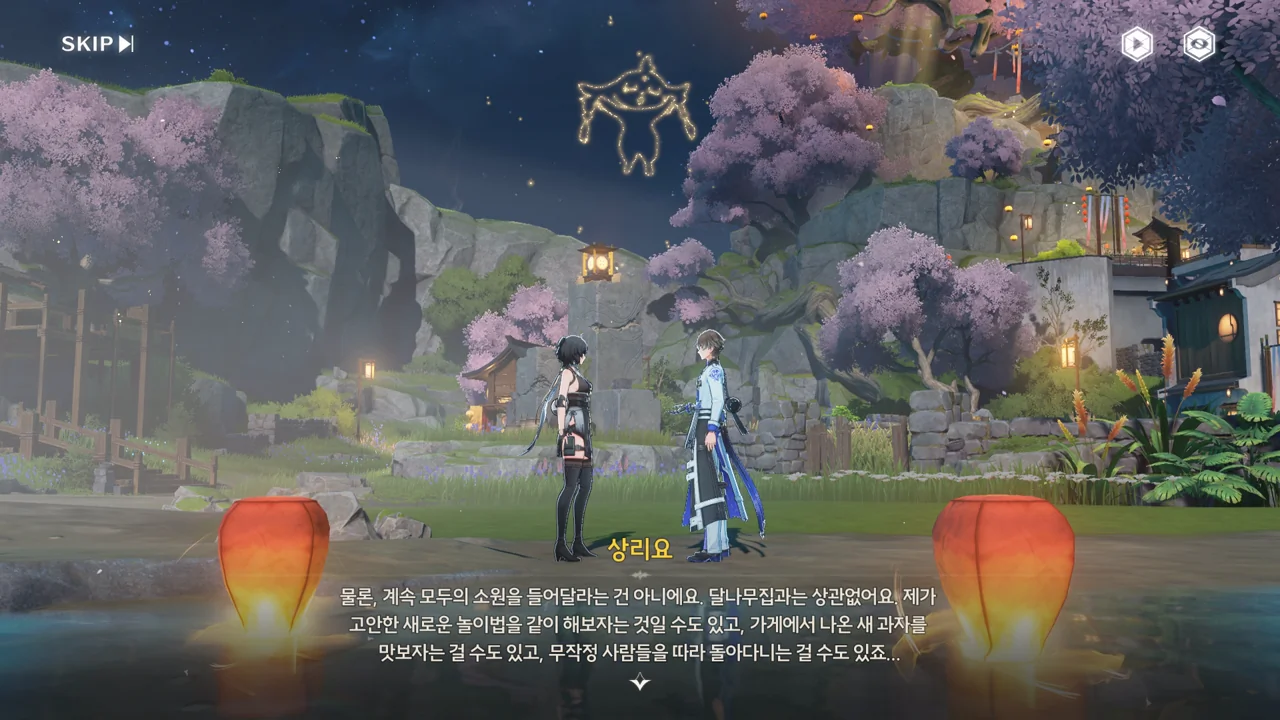 금주에서 나고 자란 상리요가 몇 년 전에서야 시간을 내 달맞이 축제 가게에 갈 수 있었다는 건 조금 의외네. 어쩌면 그때가 상리요가 아버지의 물건을 소원나무에서 발견했을 때가 아니었을까?
