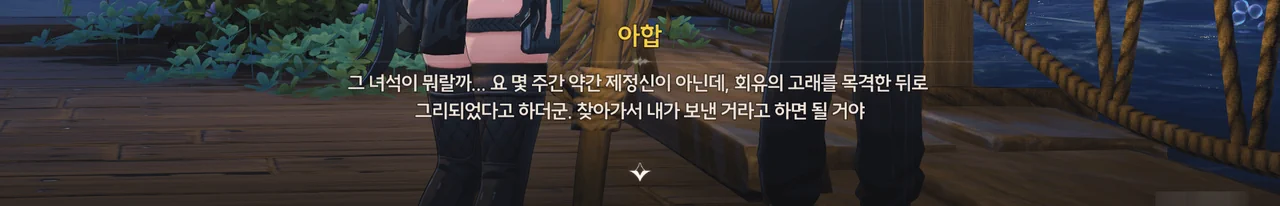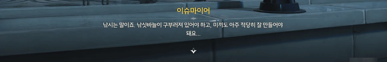대체 무슨 물고기가 걸렸길래 방랑자가 공명의 힘까지 써가며 끌어올려야 했던 거야? 물고기가 낚싯줄을 끊고 도망가는 바람에 확인할 수 없게 되었다만…