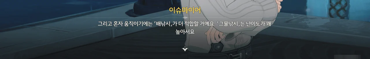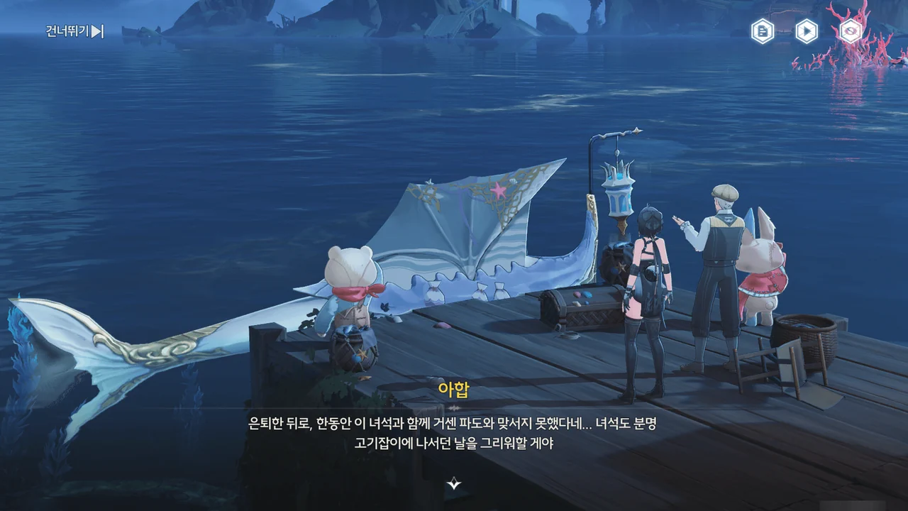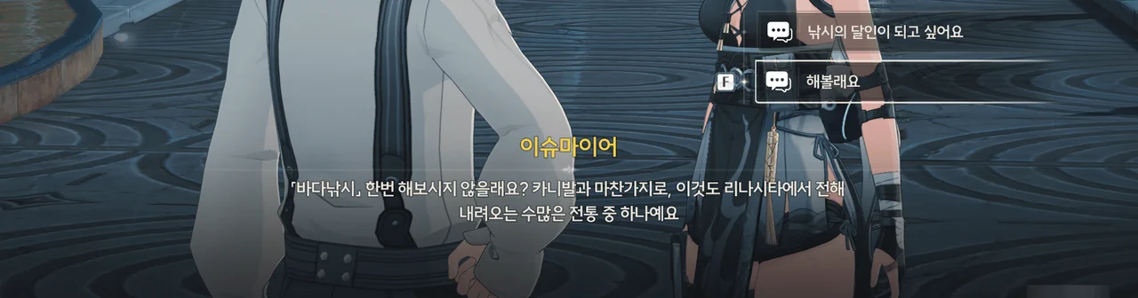 그래서인지, '노인, 물고기와 바다" 이벤트는 마치 조수 임무처럼 더빙이 완벽하게 되어 있고, 그 스토리조차 조수 임무와 제법 밀접하게 연관되어 있다.