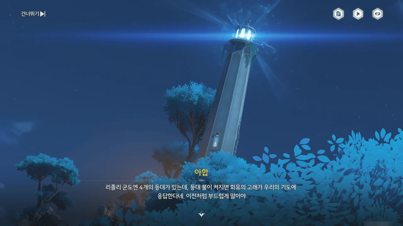 다만 얼마 전 회유의 고래가 사라진 이후, 네 개의 등대 중 세 개의 불이 꺼졌기에, 이를 다시 켜야만 한다.