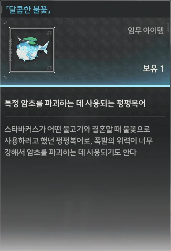 스타바커스가 어떤 물고기와 결혼할 때 불꽃으로 사용하려고 했던 펑펑복어로, 폭발의 위력이 너무 강해서 암초를 파괴하는 데 사용되기도 한다.