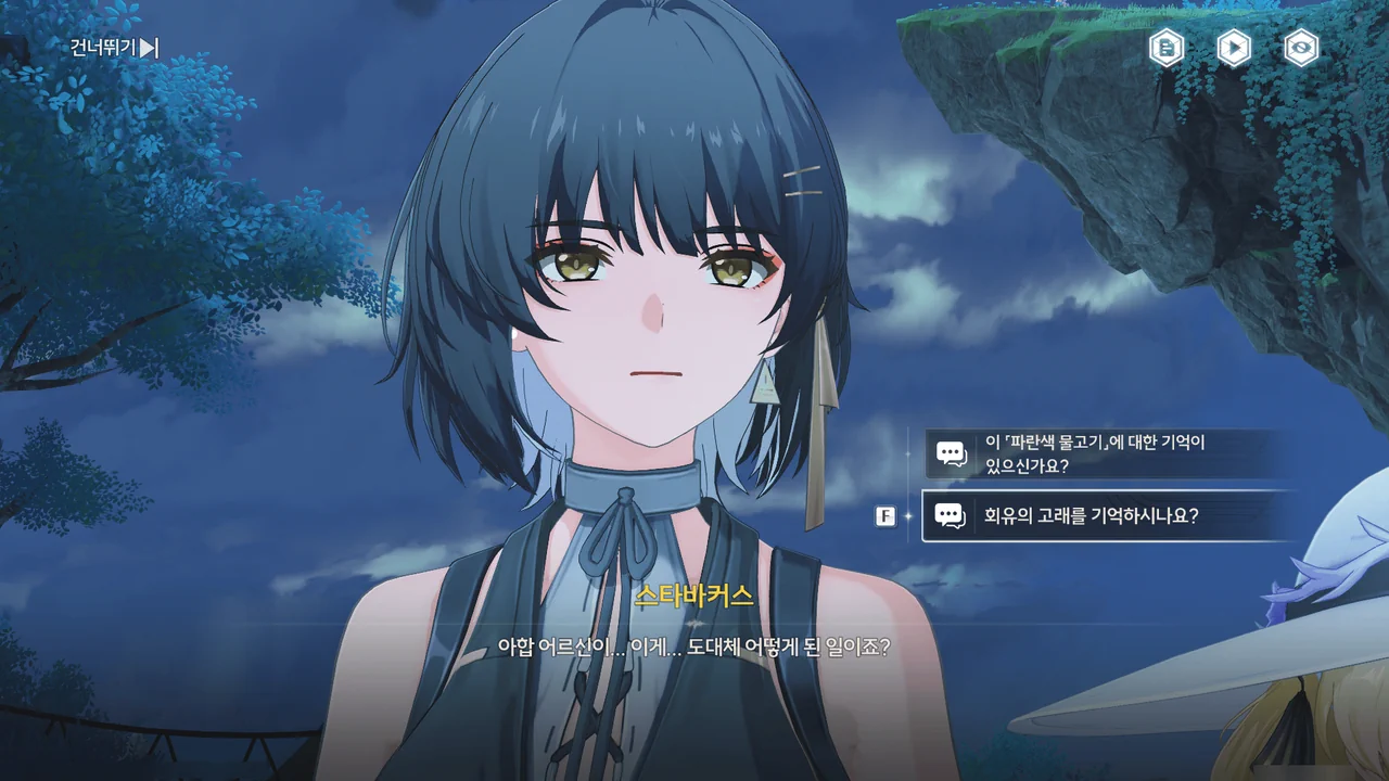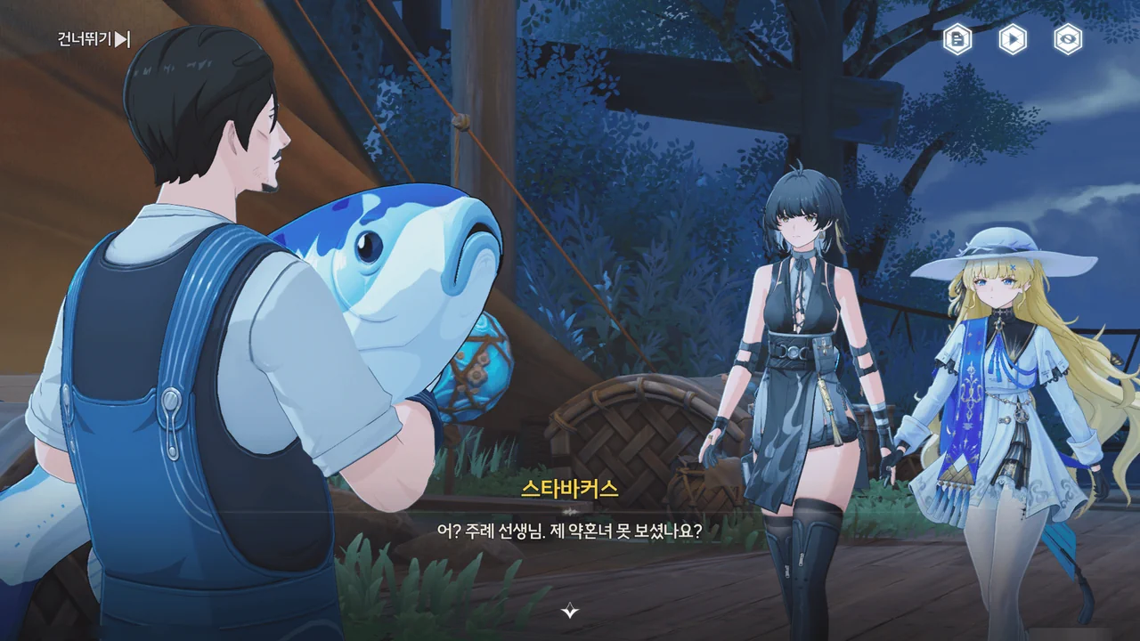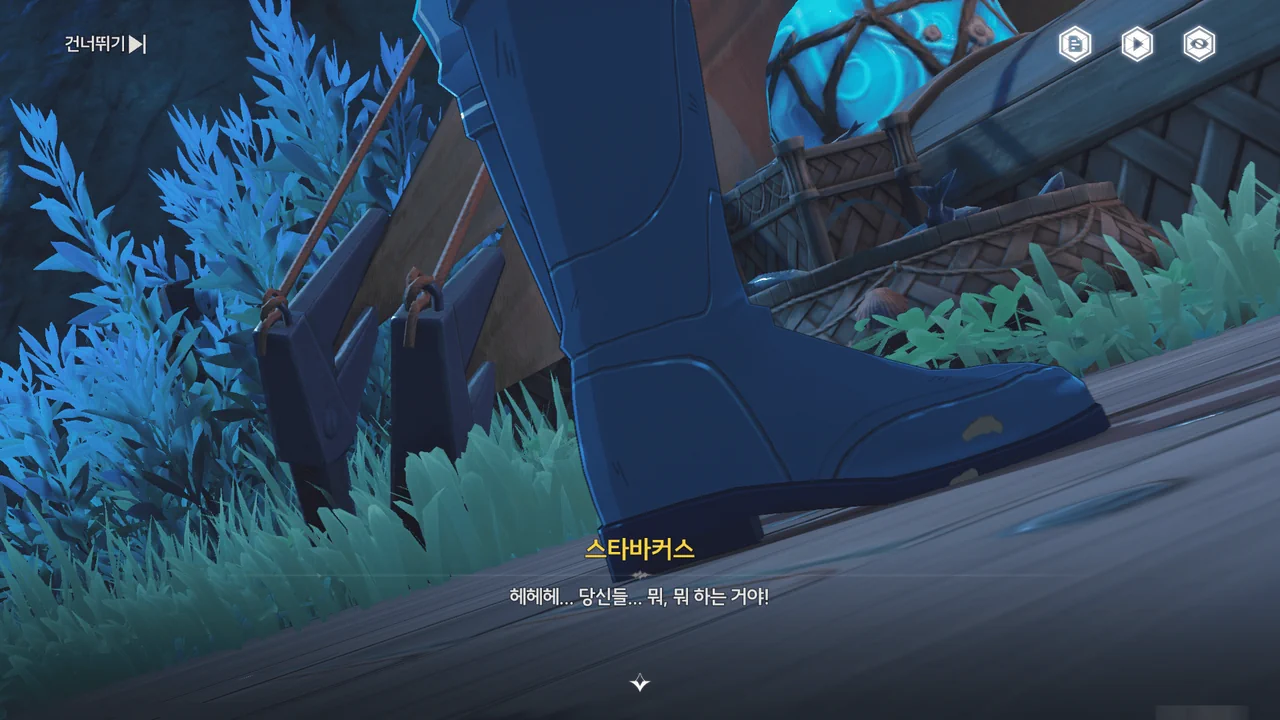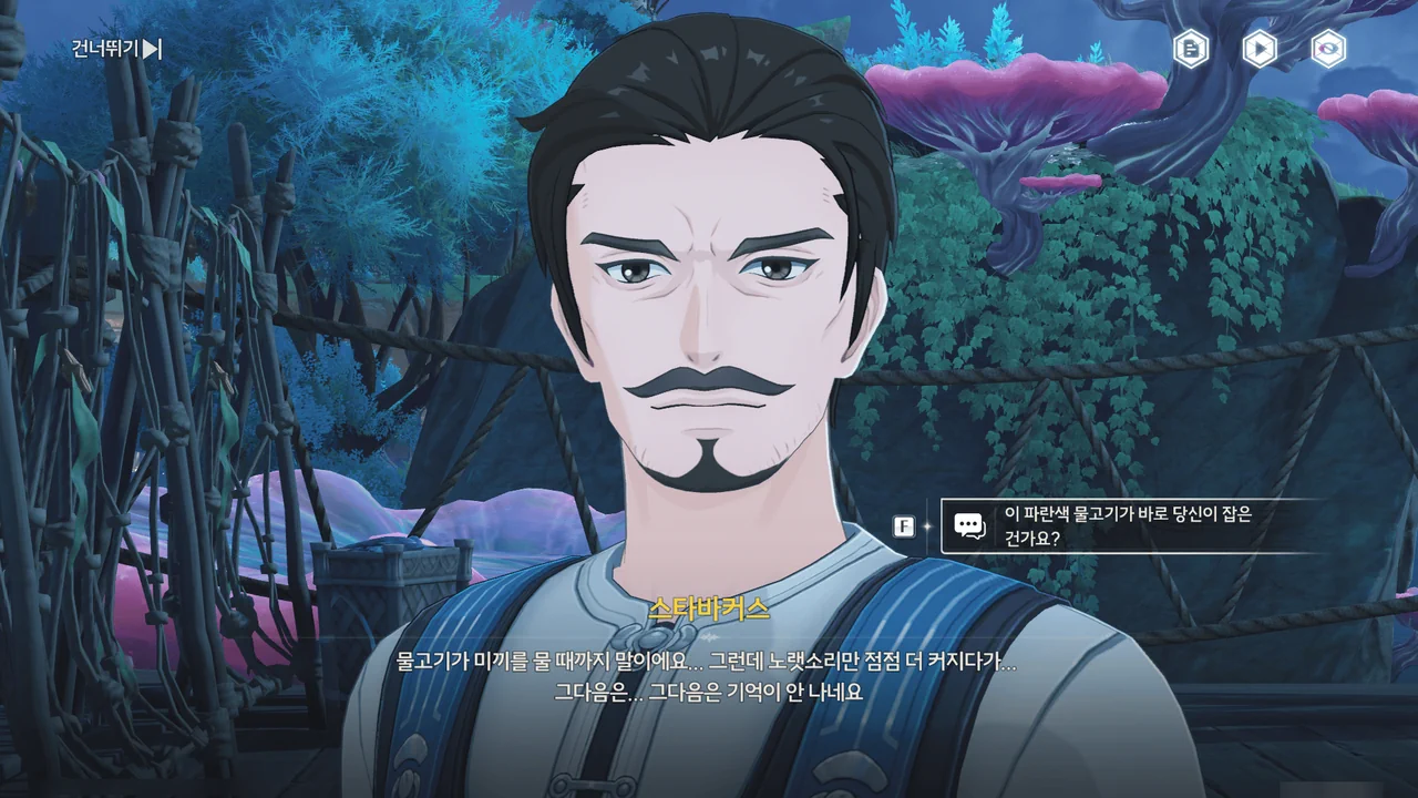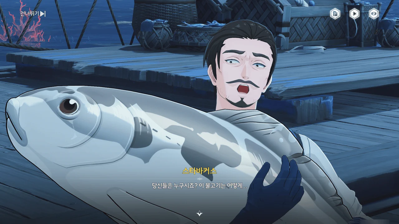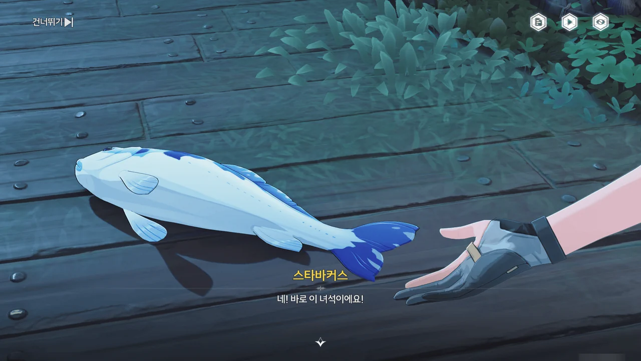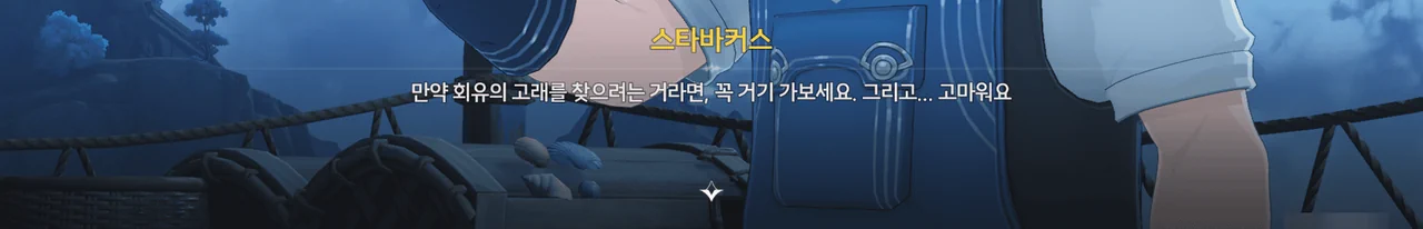 파란 생선에 정신을 빼앗긴 스타바커스를 일단 두들겨 팬 뒤, 그가 들고 있던 파란 생선 대신 방랑자가 낚아온 평범한 생선을 들려주었다.