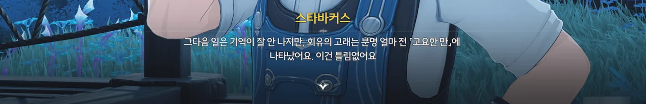 그런데 정작 방랑자와 페비가 잃어버린 물건은 없고, 오히려 방랑자의 소지품에 눈이 이상한 빛으로 빛나는 물고기가 하나 생겼다.