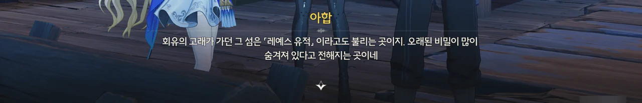 회유의 고래가 향한 '서쪽 섬'은 「레예스 유적」이라 불리는 곳으로, 거친 폭풍이 섬 주위를 둘러싸고 있어 접근이 불가능하다고 한다.