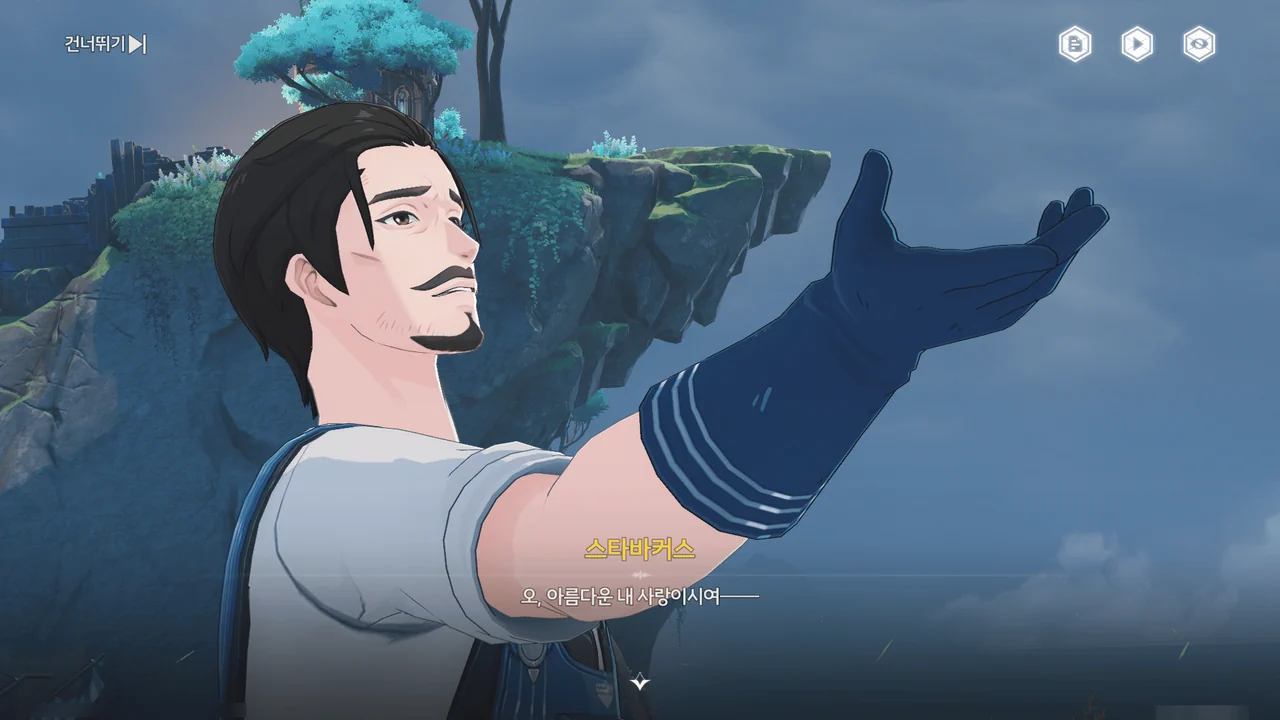 하지만 스타바커스가 만년동정의 힘을 담아 진심으로 사랑을 노래하자, 정말로 폭풍이 사그라들고 섬으로 향하는 길이 열렸다.