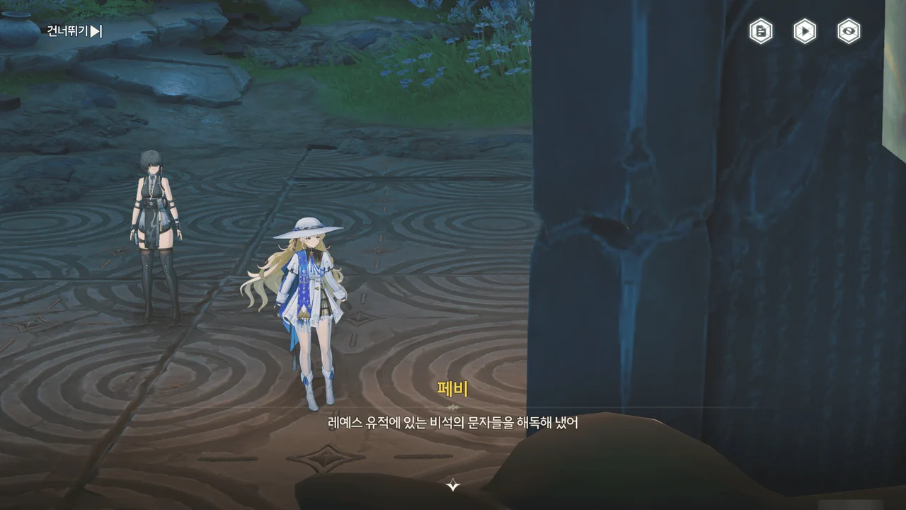 페비가 레예스 유적의 비석에 적힌 이야기를 들려준다.
