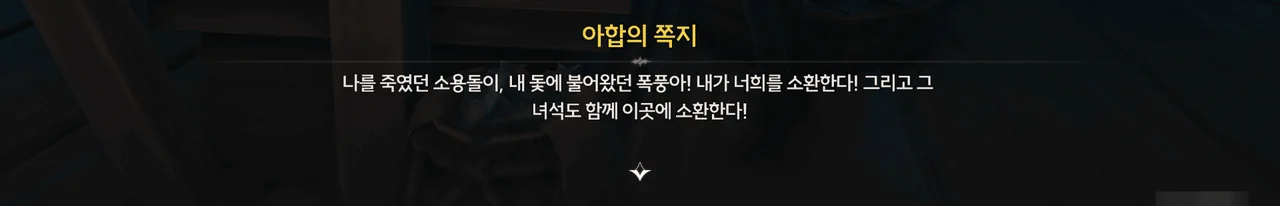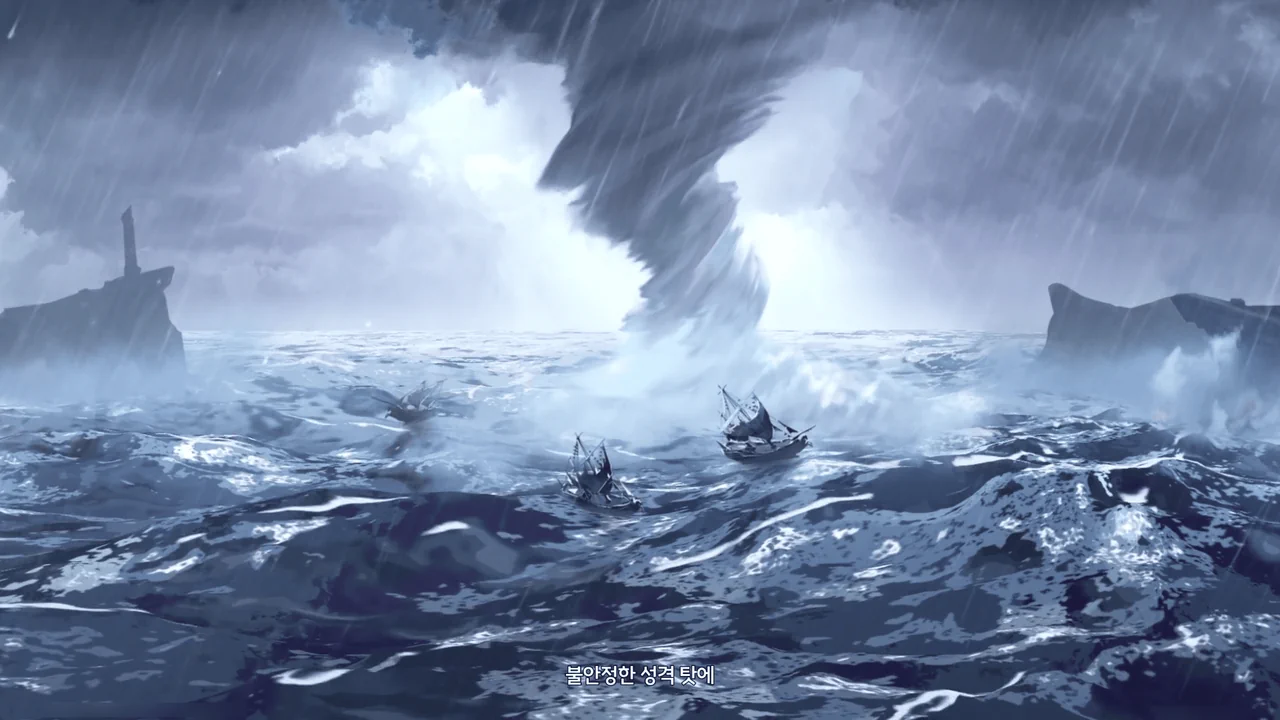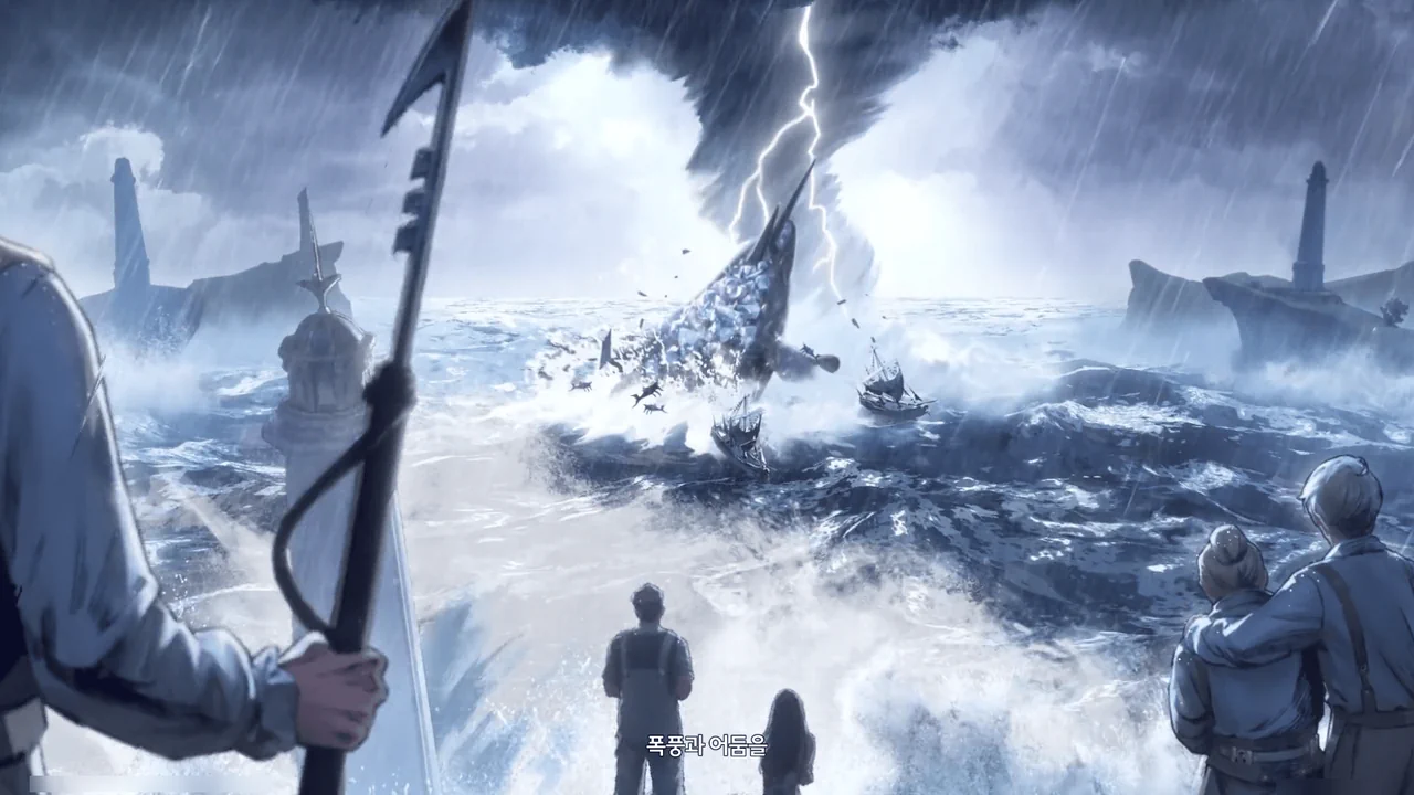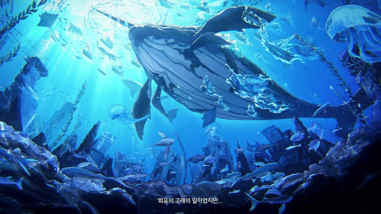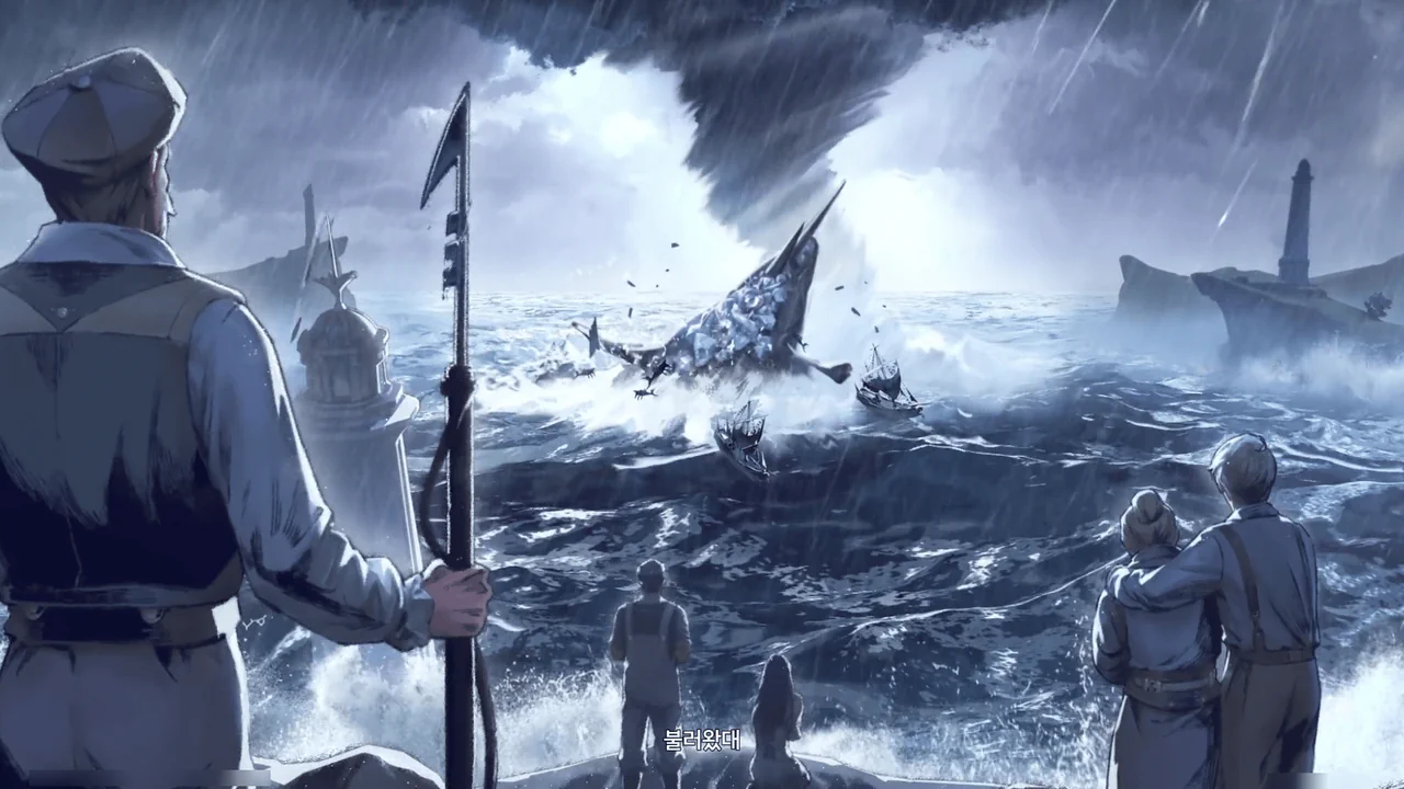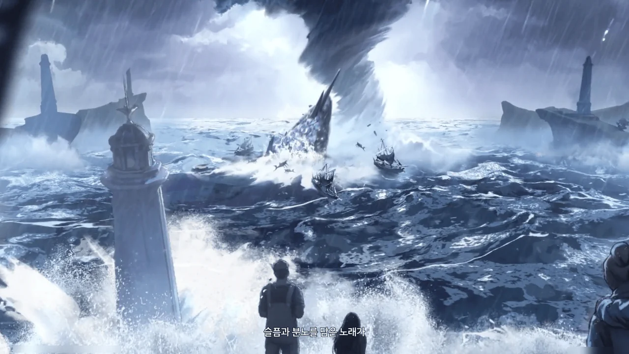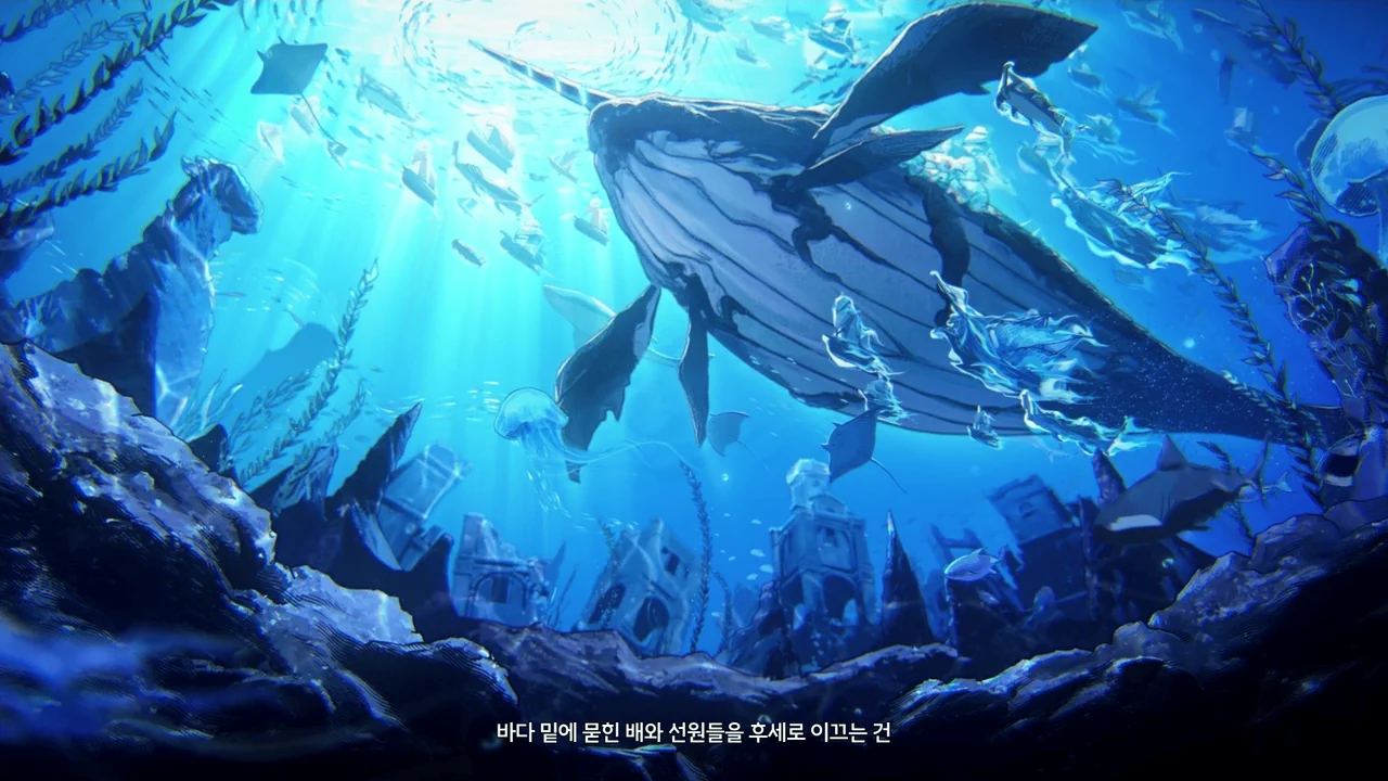 바다 밑에 묻힌 배와 선원들을 후세로 이끄는 건 회유의 고래의 일이었지만 불안정한 성격 탓에 슬픔과 분노를 담은 노래가 폭풍과 어둠을 불러왔대.