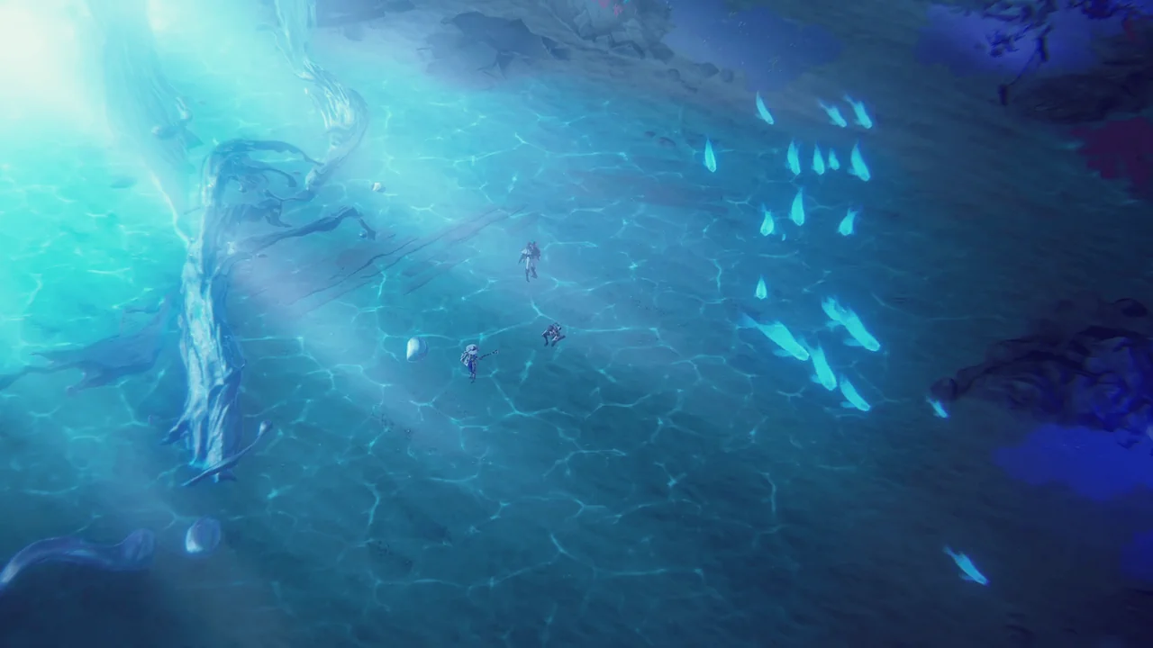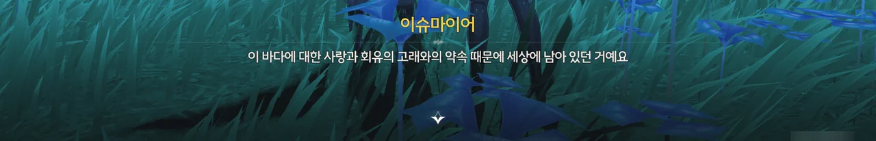 방랑자가 회유의 고래에게 "언젠가는 제가 당신을 낚아도 될까요?"라고 농담을 건네자, 회유의 고래는 한 번 해보라는 듯이 피식 웃으며 방랑자 ― 정확히는 아까부터 계속 깐족대던 포포 ― 를 향해 시원한 파도를 안겨주고 떠났다.