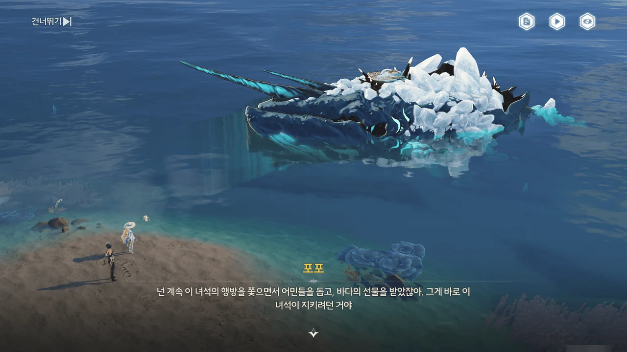 회유의 고래가 방랑자 일행을 뭍으로 옮겨준 덕분에 '졌다! 명조: 워더링 웨이브 끝!" 엔딩이 나는 일은 없었다.