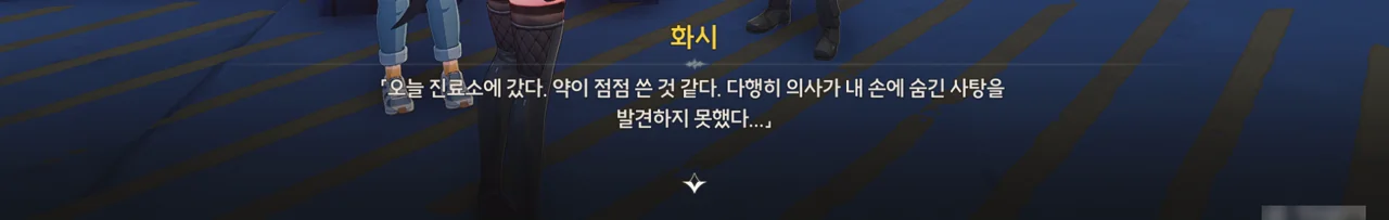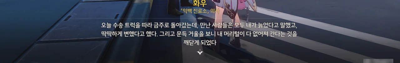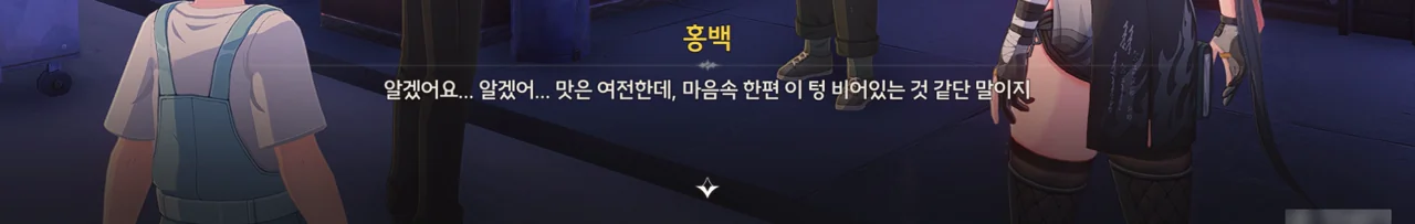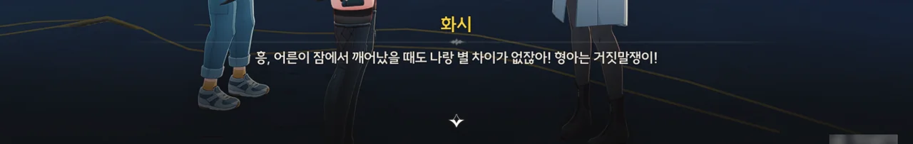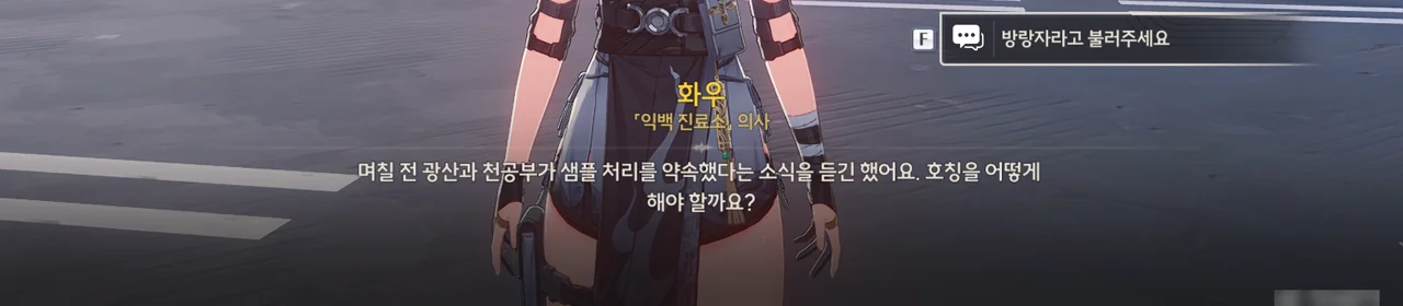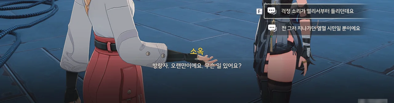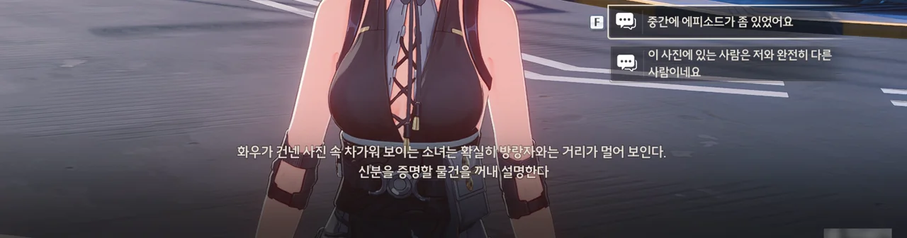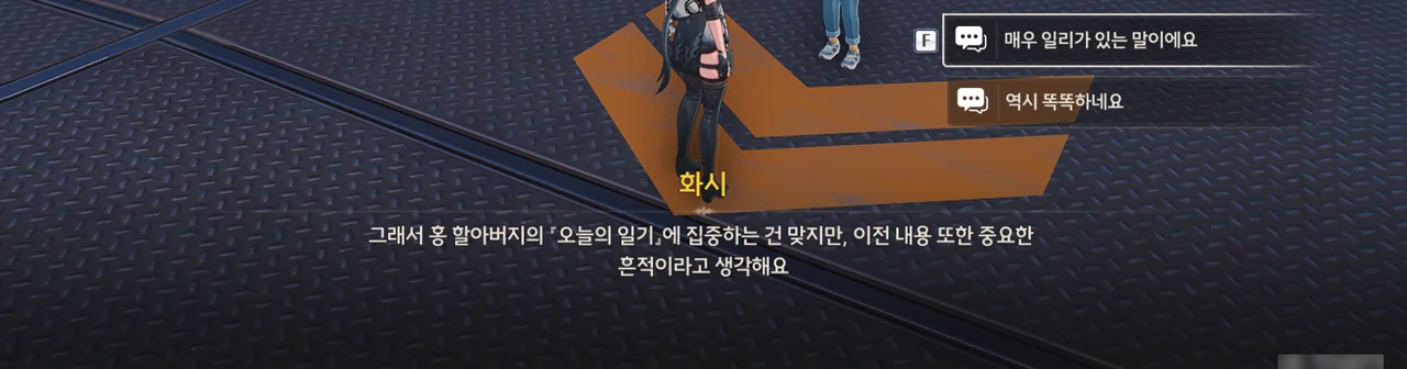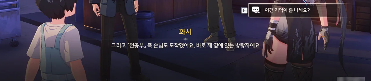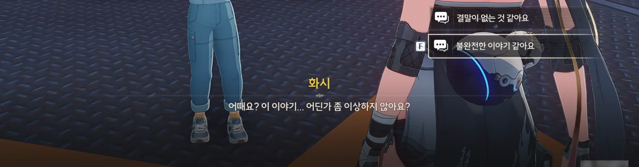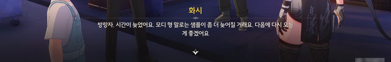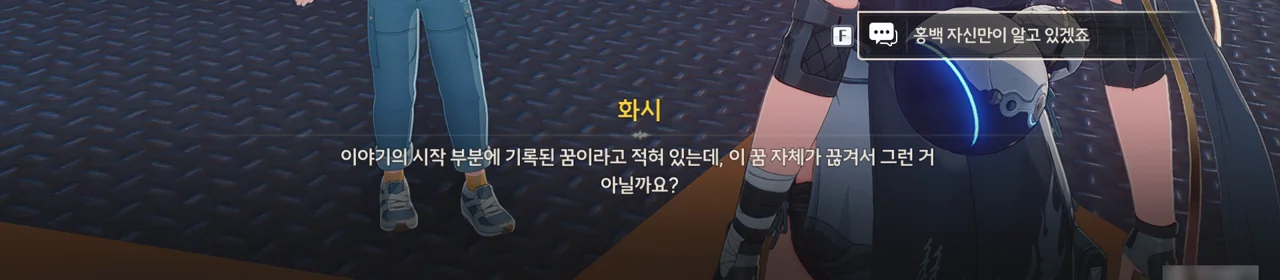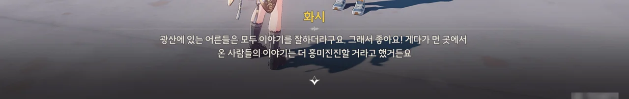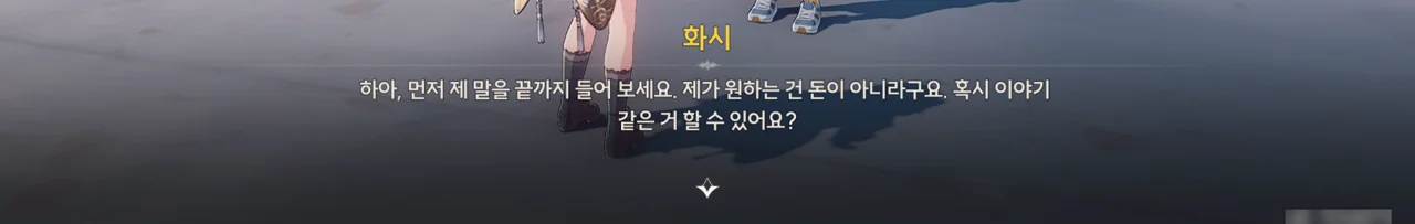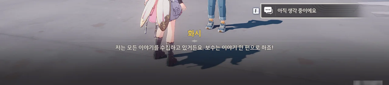 그냥 이야기를 해달라고 부탁해도 좋았을 것을 당당하게 '보수" 운운하며 요구하는 걸 보니, 조금 괘씸하다. 방랑자도 그렇게 생각한 건지, 화시의 요구에 확답하지 않고 대충 얼버무리고 있다.