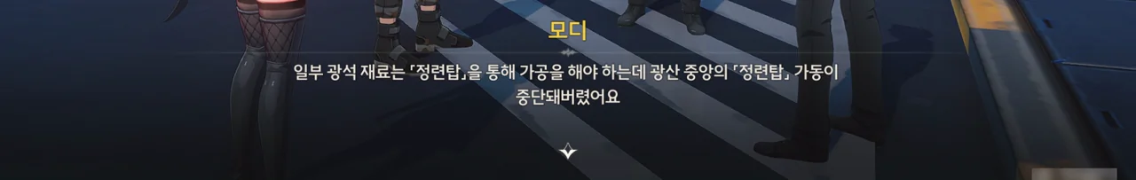 반디석을 포함한, 호환 광산에서 채굴하는 일부 광석은 광산 중앙의 「정련탑」을 이용해 가공해야 하는데, 지금 정련탑이 고장 났다고 한다. 원래라면 광산 엔지니어가 정련탑을 수리했겠지만, 그 엔지니어가 얼마 전 손발에 부상을 입어 금주성으로 후송되었다.