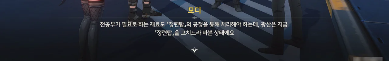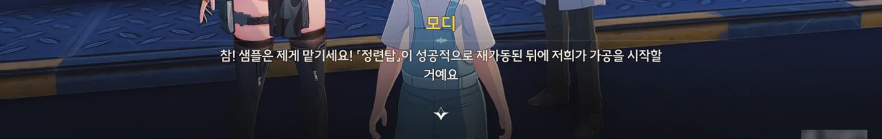 정련탑이 다시 가동했으니, 광산에 온 원래 목적인 샘플을 모디에게 맡겼다. 다만 정련탑의 완전한 재가동에는 시간이 걸리기 때문에, 오늘 내로 결과물을 받지는 못한다고 한다.