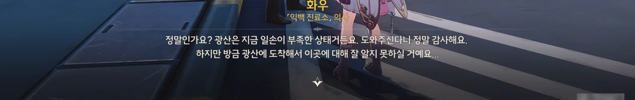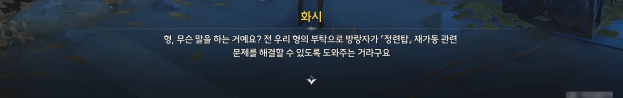 지금 광산에 일손이 부족해, 방랑자가 정련탑 수리까지 맡게 되었다. 광산에 초행인 방랑자를 위해 화우가 조력자를 한 명 붙여준다고 한다.