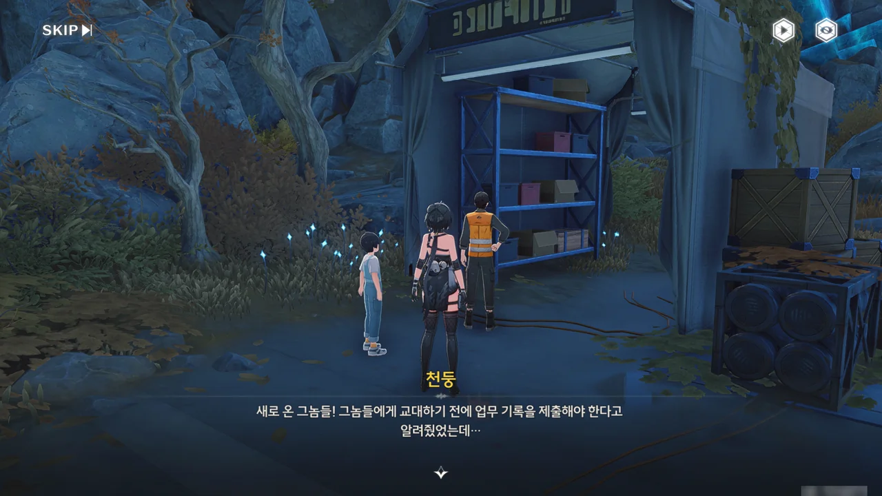 화시가 말한 사람은 바로 천둥이었다. 천둥은 신입이 업무 기록을 제출하지 않은 것에 대해 화를 내고 있었다.