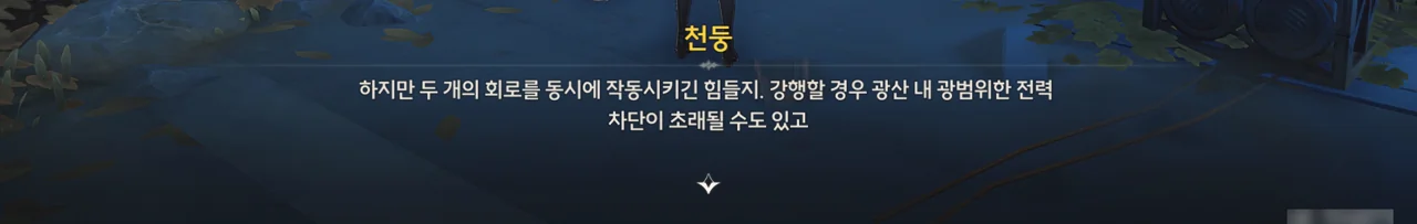 난 광산 내부 시설의 전원을 내리는 이유가 정련탑을 가동할 때 「이중 회로 전력 공급 시스템」에 걸리는 부하를 낮추기 위해서인 줄 알았다. 그런데 위 서술을 보면, 정련탑은 그냥 외부 전원만으로도 가동이 가능했던 것으로 보인다. 그럼 대체 왜 내부 시설의 전원을 내린 거야?