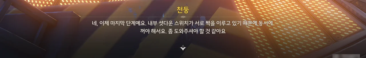 내부 셧다운 스위치는 두 곳에서 동시에 눌러야 하는 스위치이다. 여기에 하나가 있으니, 다른 하나는 분명 저기 있는 스위치일 것이다. 그런데 왜 저기에 천둥은커녕 NPC 하나 보이지 않는 거지?