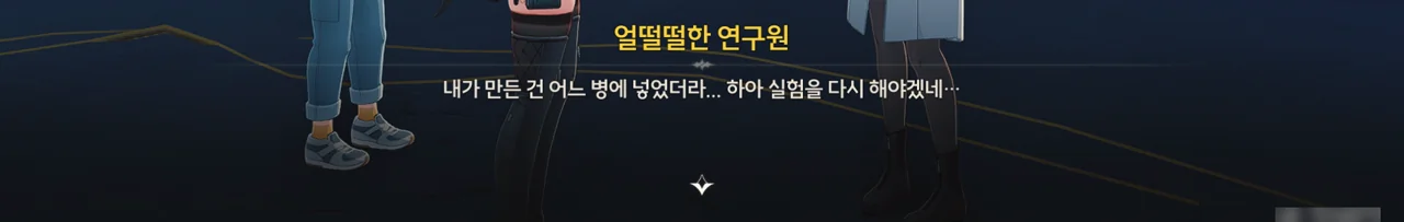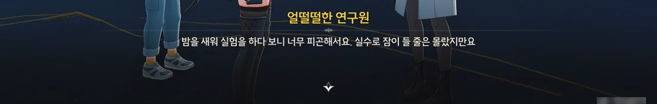 이 연구원은 밤을 새워 실험을 하다 정련탑이 멈춰 실험이 중단되자, 바람을 쐬러 나왔다가 선채로 잠에 들었다고 한다. 그렇게 피곤하면 지금 당장이라도 자는 게 조금이나마 더 효율적일 텐데, 이 연구원은 실험을 계속하러 다시 안으로 들어가 버렸다.