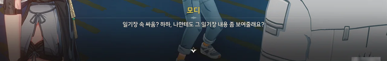 내가 봐도 모디의 생각은 너무 낙관적이다. 여태껏 만난 잔상 중, 방랑자를 적대하지 않은 잔상은 말 그대로 한 손에 꼽을 수 있을 정도로 극히 적었다. 잔상과의 공존은 먼저 잔상에게 공격받지 않을 방법을 찾고 나서 의논해야 하는 것 아닐까?