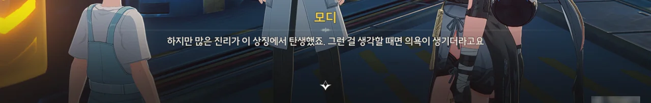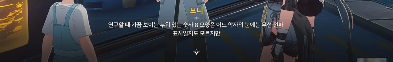 모디가 갑자기 ∞ 기호가 평범한 학자에겐 무선 전파 표식으로만 보이겠지만, 어떤 공상 과학 연극에선 새로운 생명에 대한 상징이며 수많은 진리를 탄생시켰다는 말을 한다. 갑자기 왜 이런 말을 하는 거지?