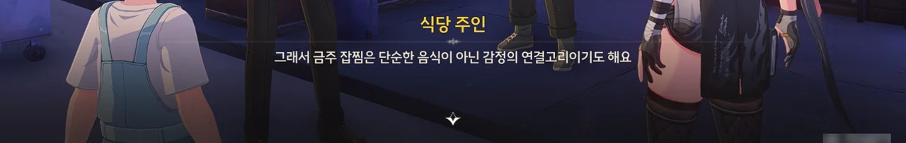 금주 잡찜은 오래전부터 홍백이 일을 마치고 동료들과 함께 먹던 음식이다. 하지만 시간이 흐르면서 그의 곁에 있던 동료가 하나둘 사라지거나 다른 사람으로 바뀌었고, 마지막에는 홍백 혼자 남게 되었다.