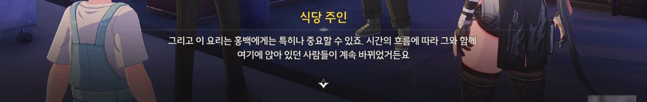 대체 무슨 상황인지 이해하지 못하는 식당 주인에게 상황을 설명해 준다. 식당 주인 역시 홍백이 정련탑을 수리하고 온 건 줄 알고 있었다고…