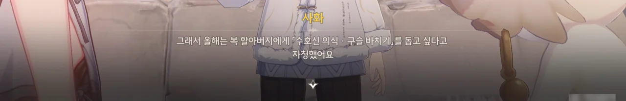 지혜를 시험하는 퍼즐까지는 할아버지가 혼자 할 수 있다고 쳐. 그런데 방금 그 많은 잔상을 처치하는 것까지가 의식의 일부잖아? 그러면 복 할아버지는 매년 그 많은 잔상들을 홀로 처치해 온 거야?