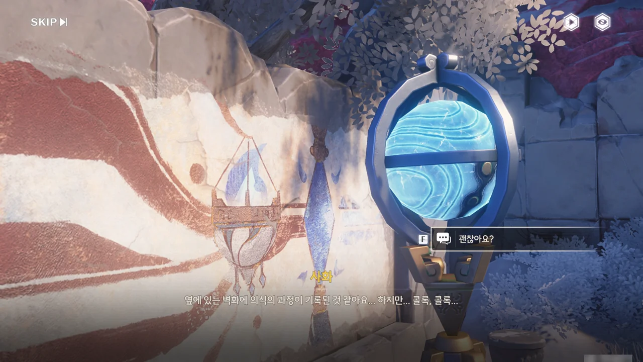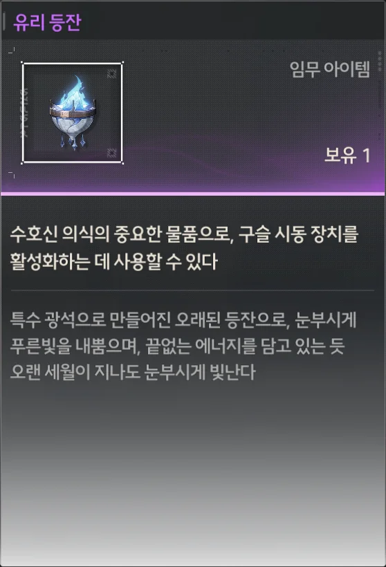 아까 봤던 수정탑의 이름이 '구슬 시동 장치'인 건가? 벽화에 유리 등잔과 쌍으로 그려져 있던데.