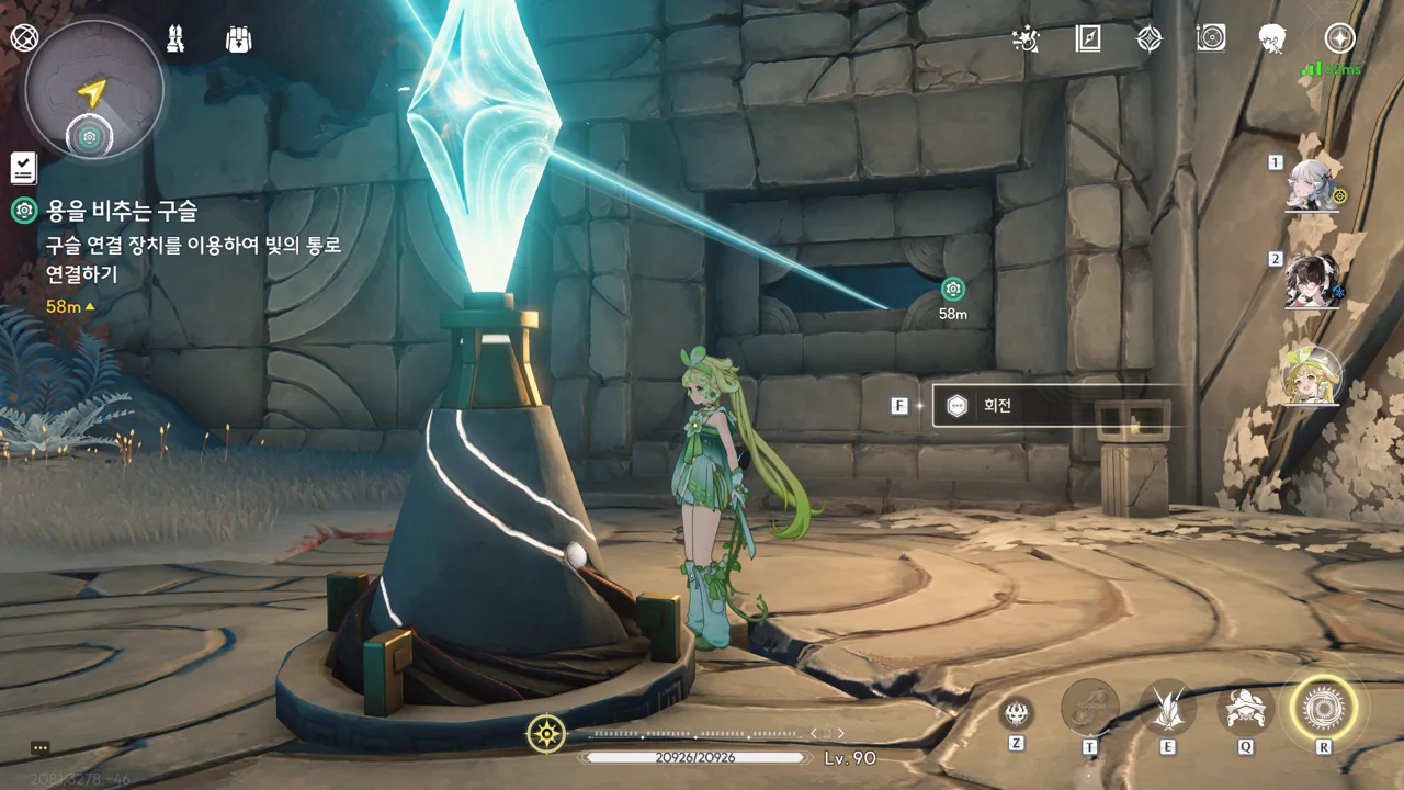 여긴 제법 시간을 많이 썼다. 역류계로 일단 위쪽에 있는 수정탑에 접근할 수 있게 발판을 만든 다음, 위쪽 수정탑을 먼저 돌려야 한다. 그다음 아래로 내려와 역류계와 아래쪽 수정탑을 돌리는 거지.